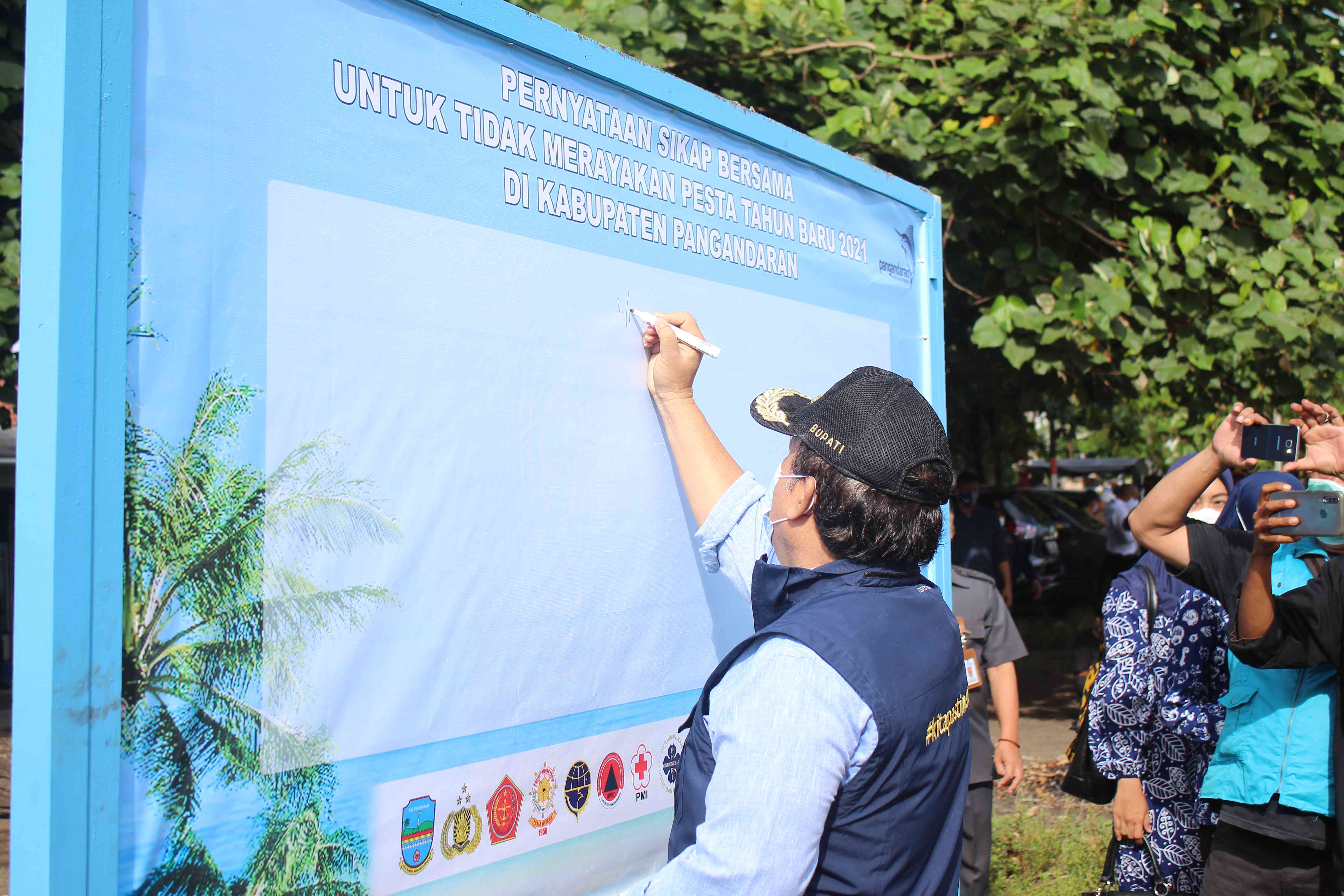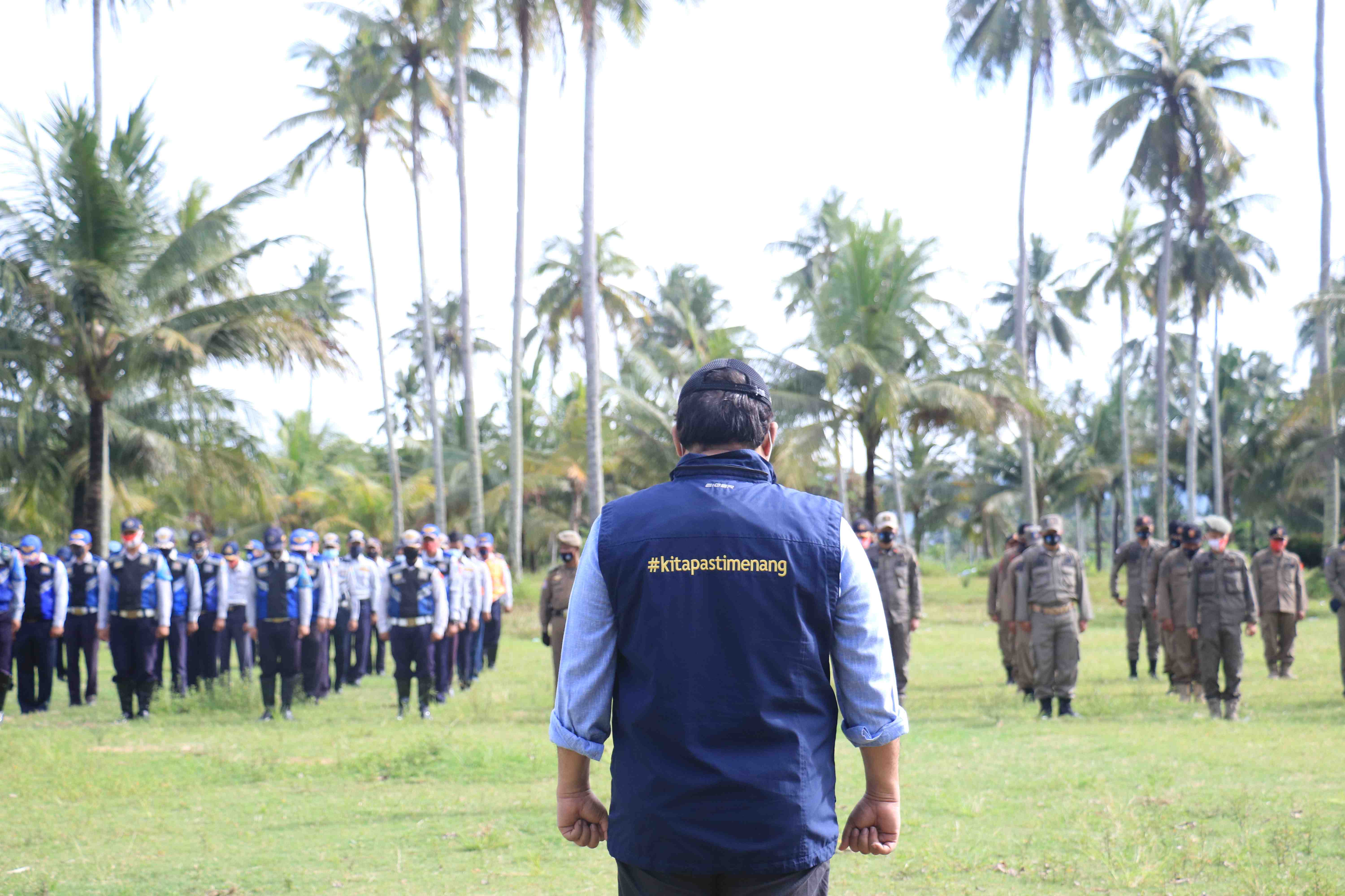 Bupati Pangandaran H. Jeje Wiradinata pimpin Apel Gabungan Jelang Pergantian Tahun Baru 2021, di Lapang Grand Pangandaran. Kamis, 31 Desember 2020.