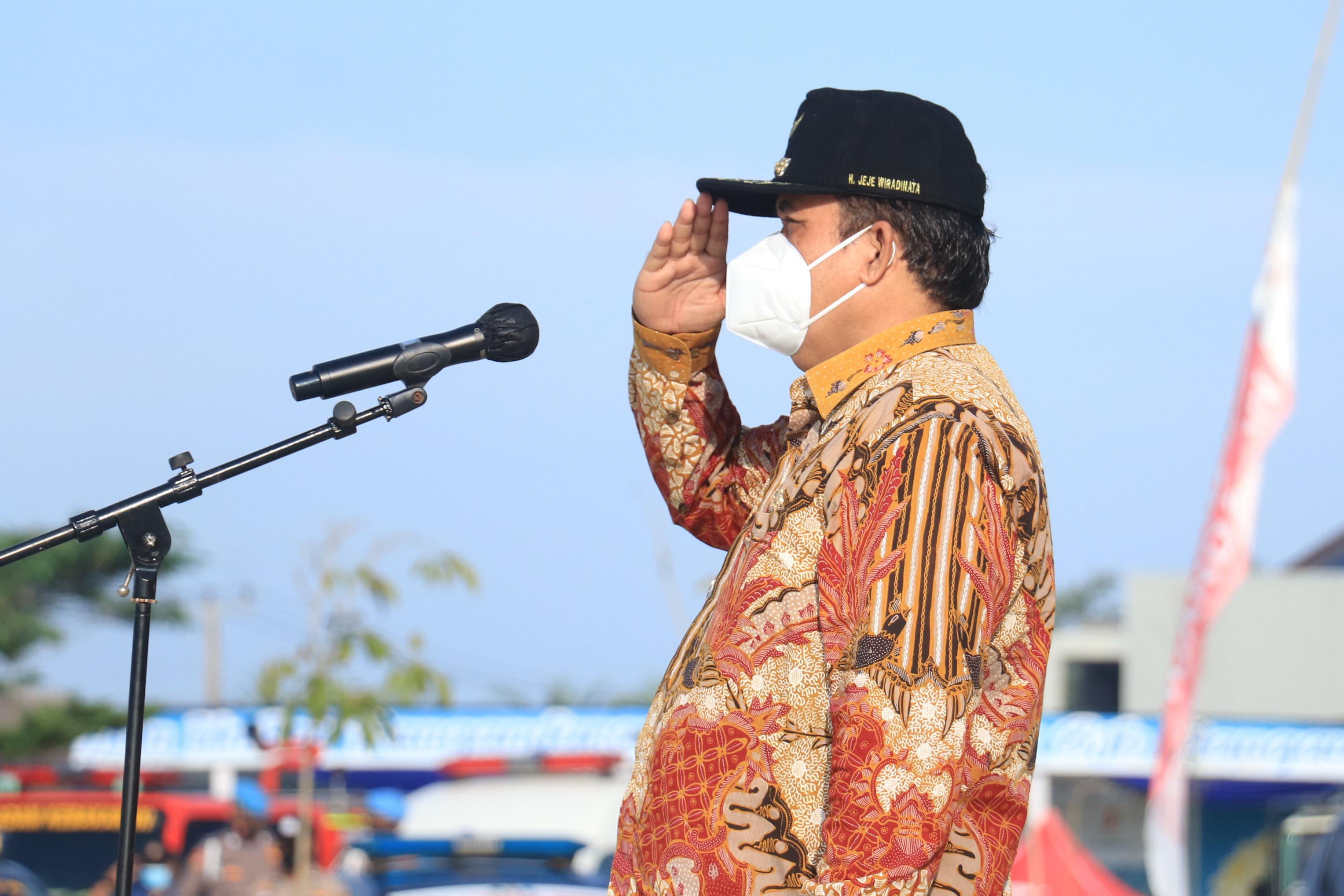 Apel Gelar Pasukan Operasi Ketupat Lodaya 2022 tingkat Kabupaten Pangandaran, dipimpin Bupati Pangandaran H. Jeje Wiradinata, bertempat di Alun Alun Paamprokan, Jumat, 22/4/2022.