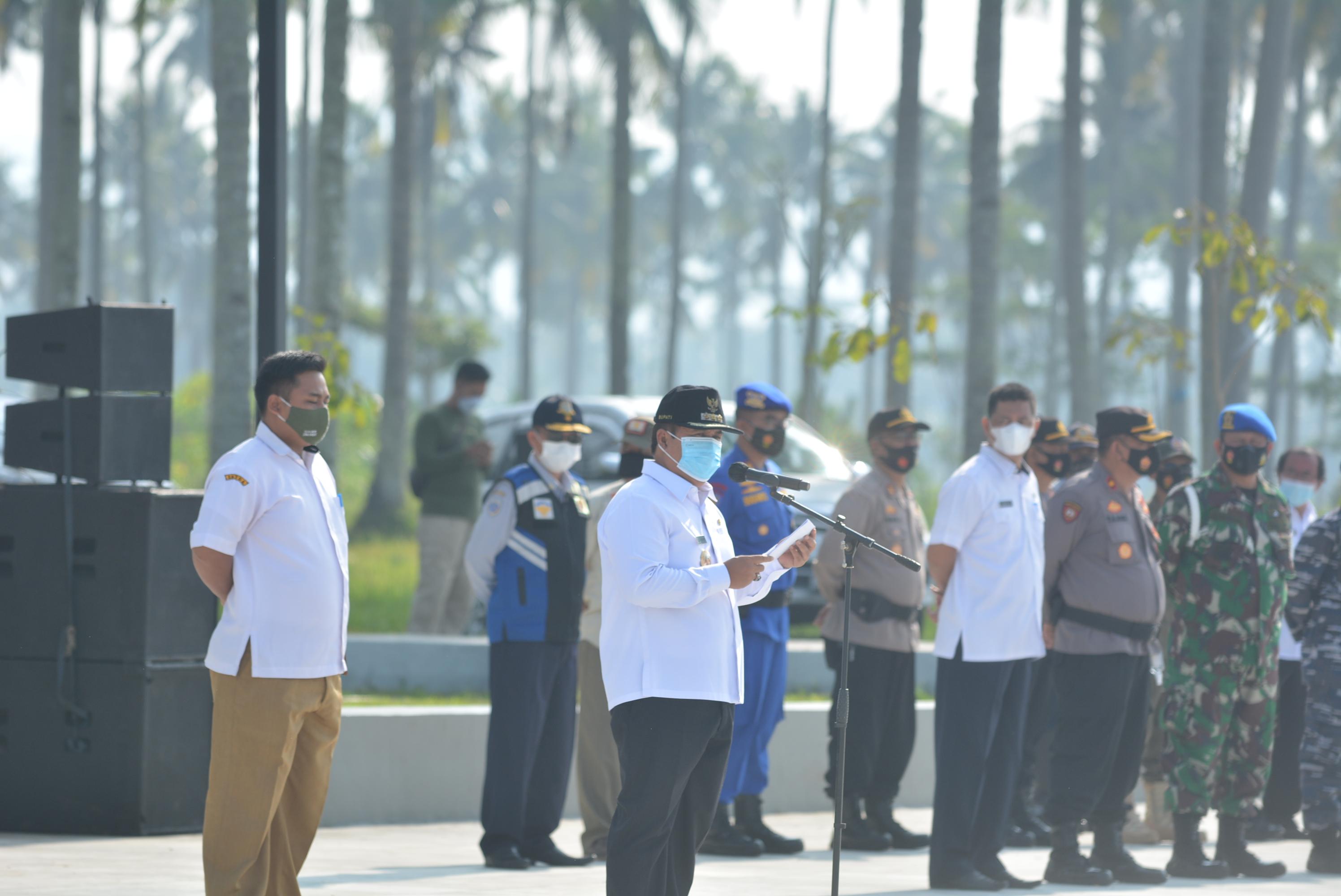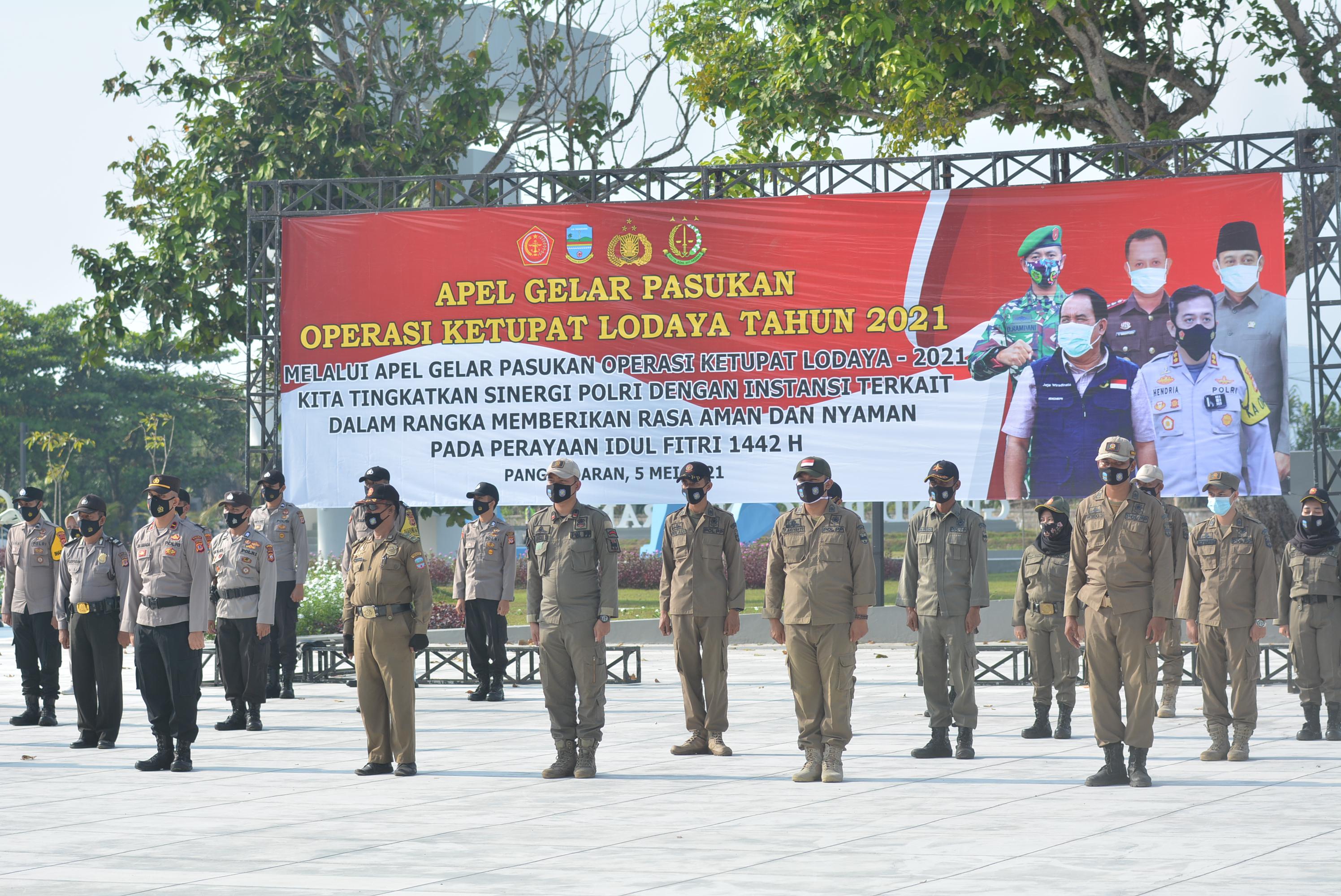Bupati Pangandaran H. Jeje Wiradinata memimpin Apel Gelar Pasukan Operasi Ketupat Lodaya Tahun 2021 dalam rangka Penanganan Idul Fitri 1442 H, bertempat di Alun-alun Paamprokan. Rabu, 5 Mei 2021.