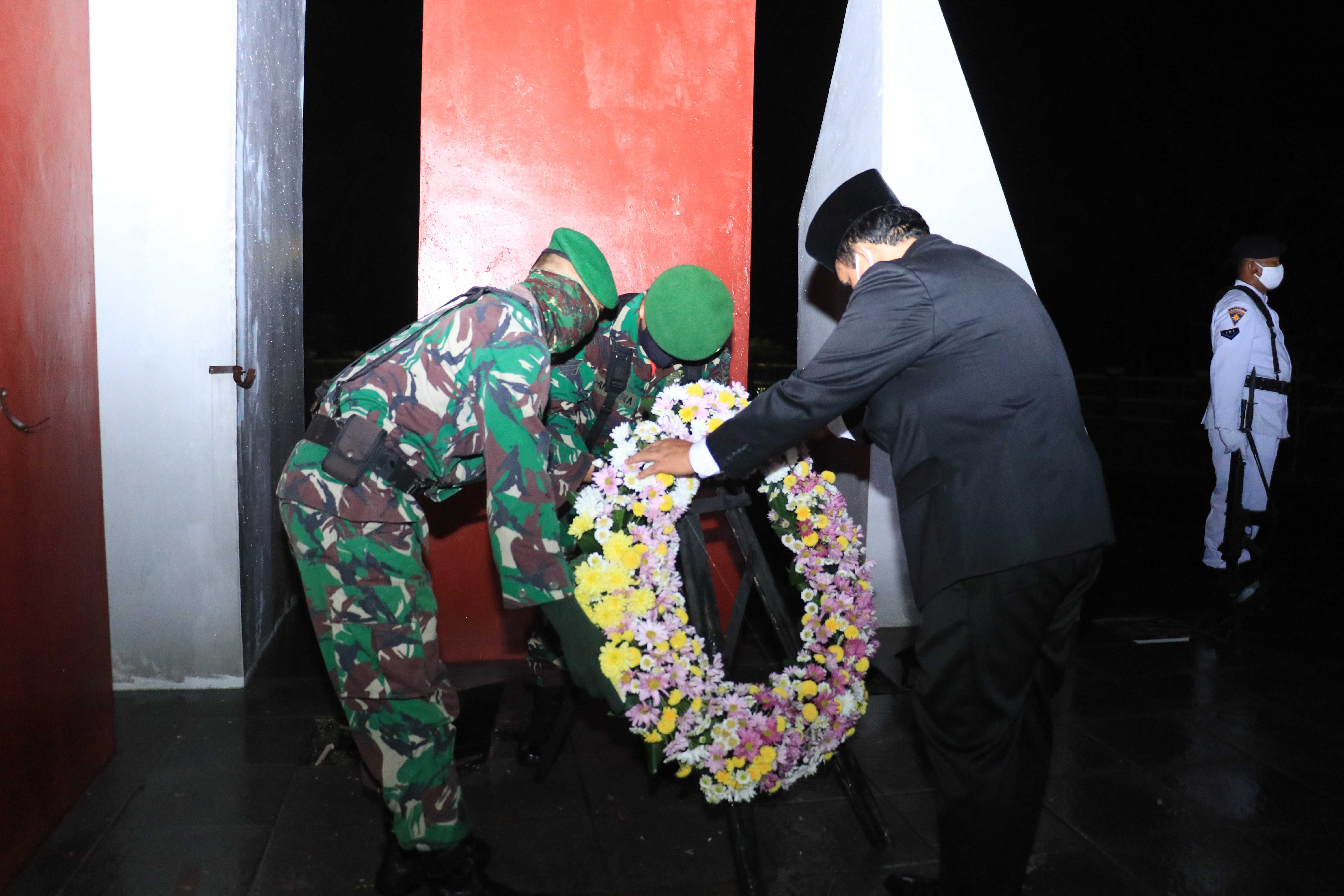 Bupati Pangandaran H. Jeje Wiradinata pimpin Apel Renungan Suci dalam rangka HUT Kemerdekaan Ke-75 Republik Indonesia, bertempat di Taman Makam Pahlawan Pangandaran. Senin, 17 Agustus 2020.