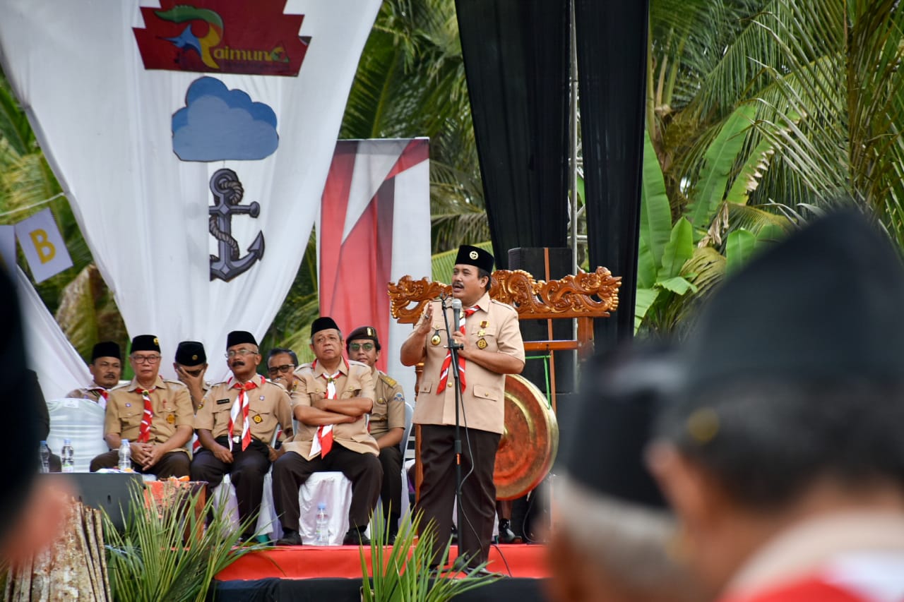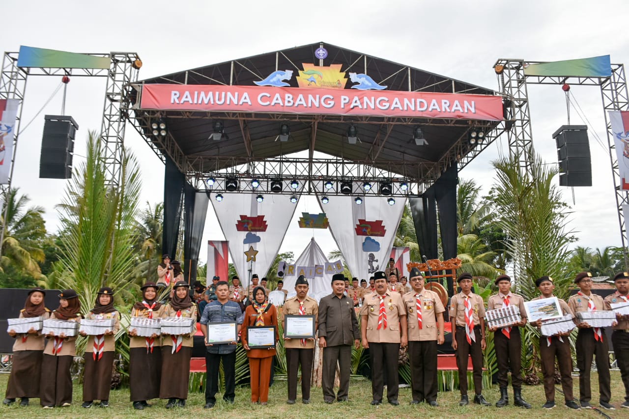 Bupati Pangandaran H. Jeje Wiradinata membuka acara Raimuna Cabang Gerakan Pramuka Pangandaran Tahun 2019, bertempat di Lapang Nusa Gede Desa Cijulang Kec. Cijulang. Jum'at, 13 Desember 2019.