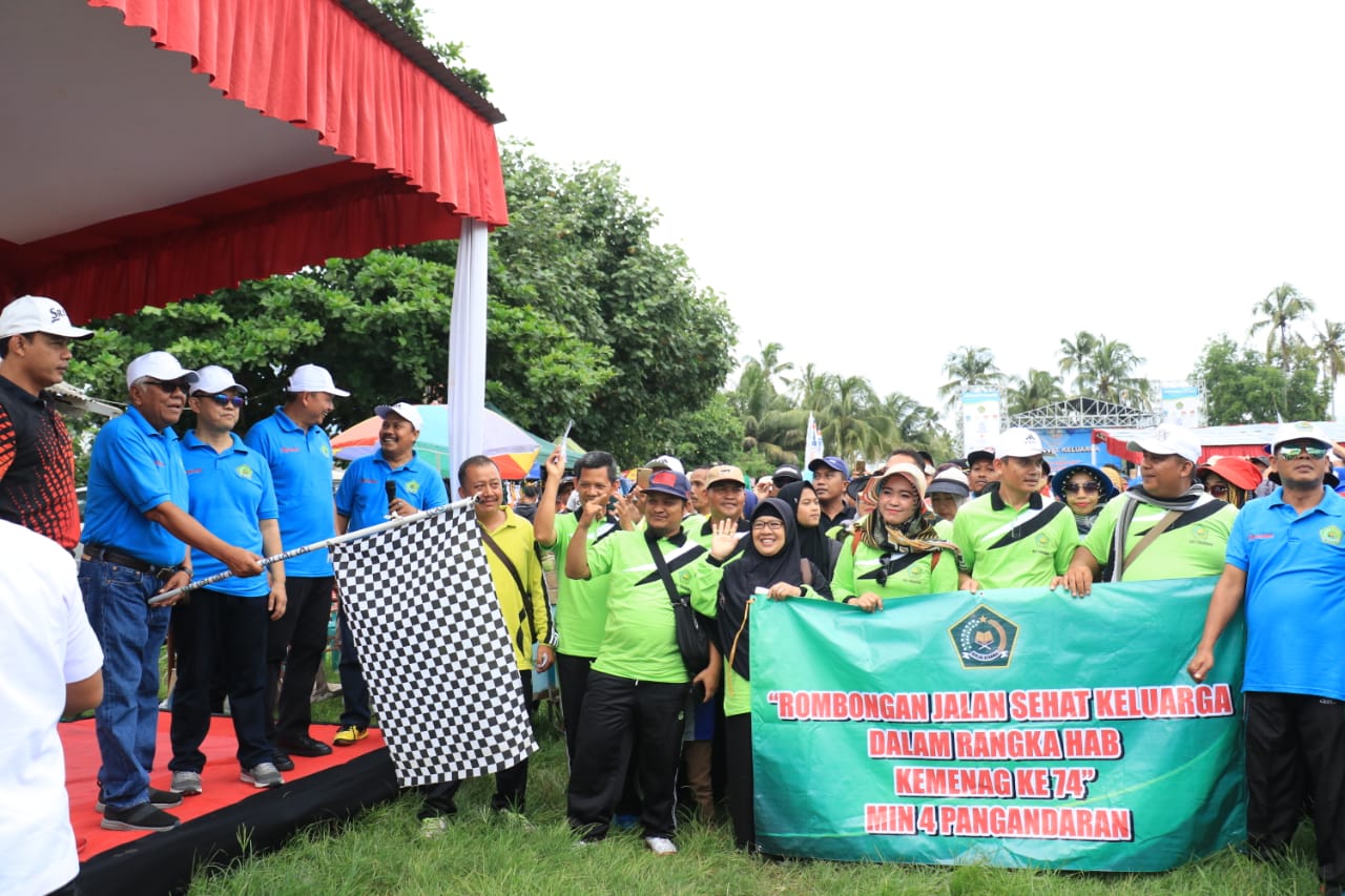 Wakil Bupati Pangandaran H. Adang Hadari membuka acara Jalan Sehat Hari Amal Bakti (HAB) Ke-74 Kementerian Agama Tahun 2020 Tingkat Kabupaten Pangandaran, bertempat di Lapang Grand Pangandaran. Rabu, 8 Januari 2020.