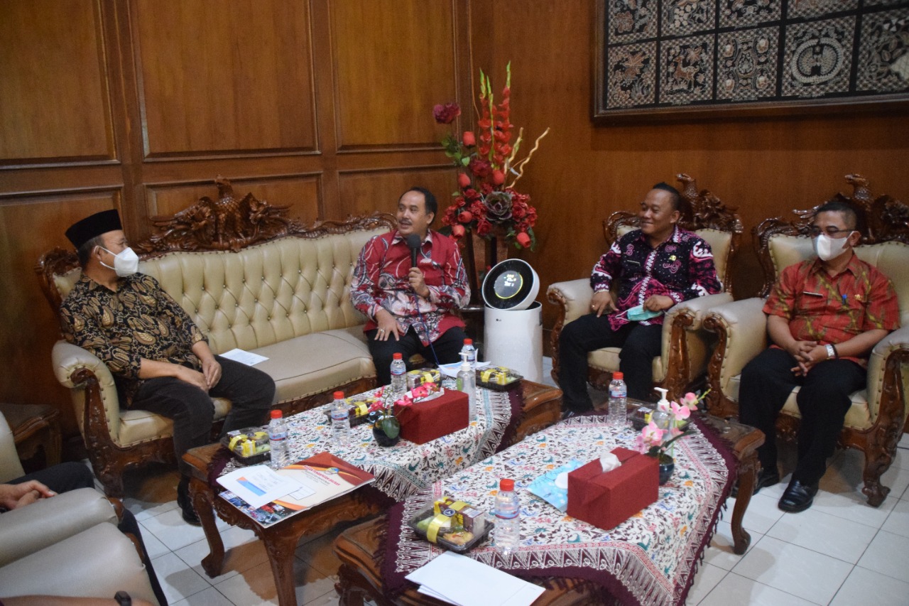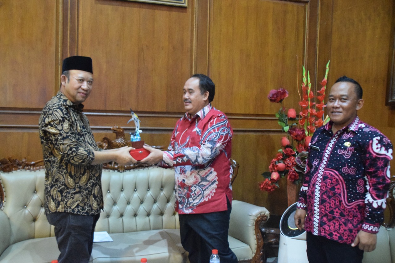 Bupati Pangandaran H. Jeje Wiradinata didampingini Kepala Badan Pendapatan Daerah Kabupaten Pangandaran H. Dadang Solihat, S.Pd., M.Pd. bersama jajaran melakukan kunjungan kerja ke Kabupaten Banyumas, dalam rangka Studi Komparasi mengenai Pajak Air Tanah bertempat di Pendopo Si Panji Kabupaten Banyumas. Kamis (2/6/2022)