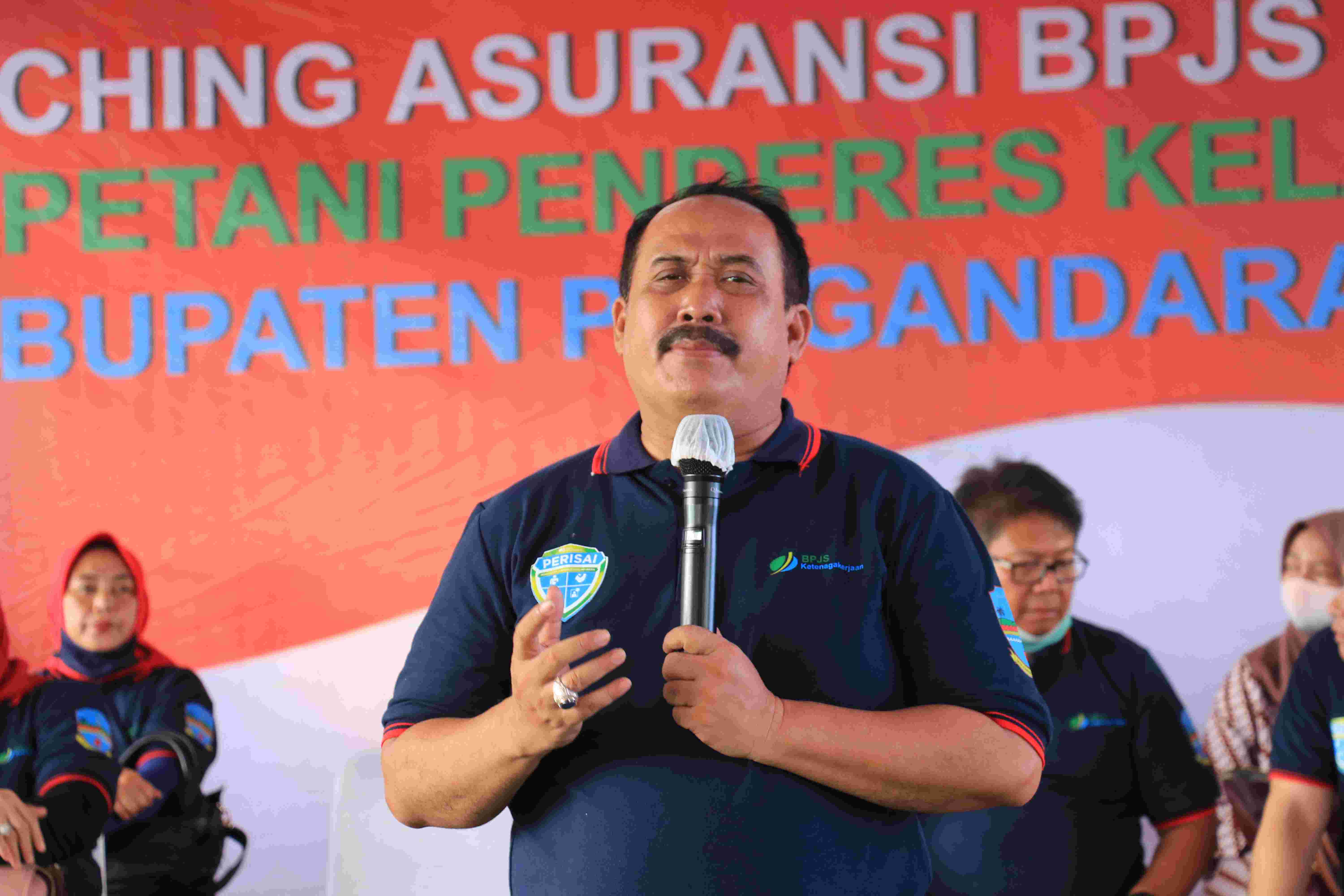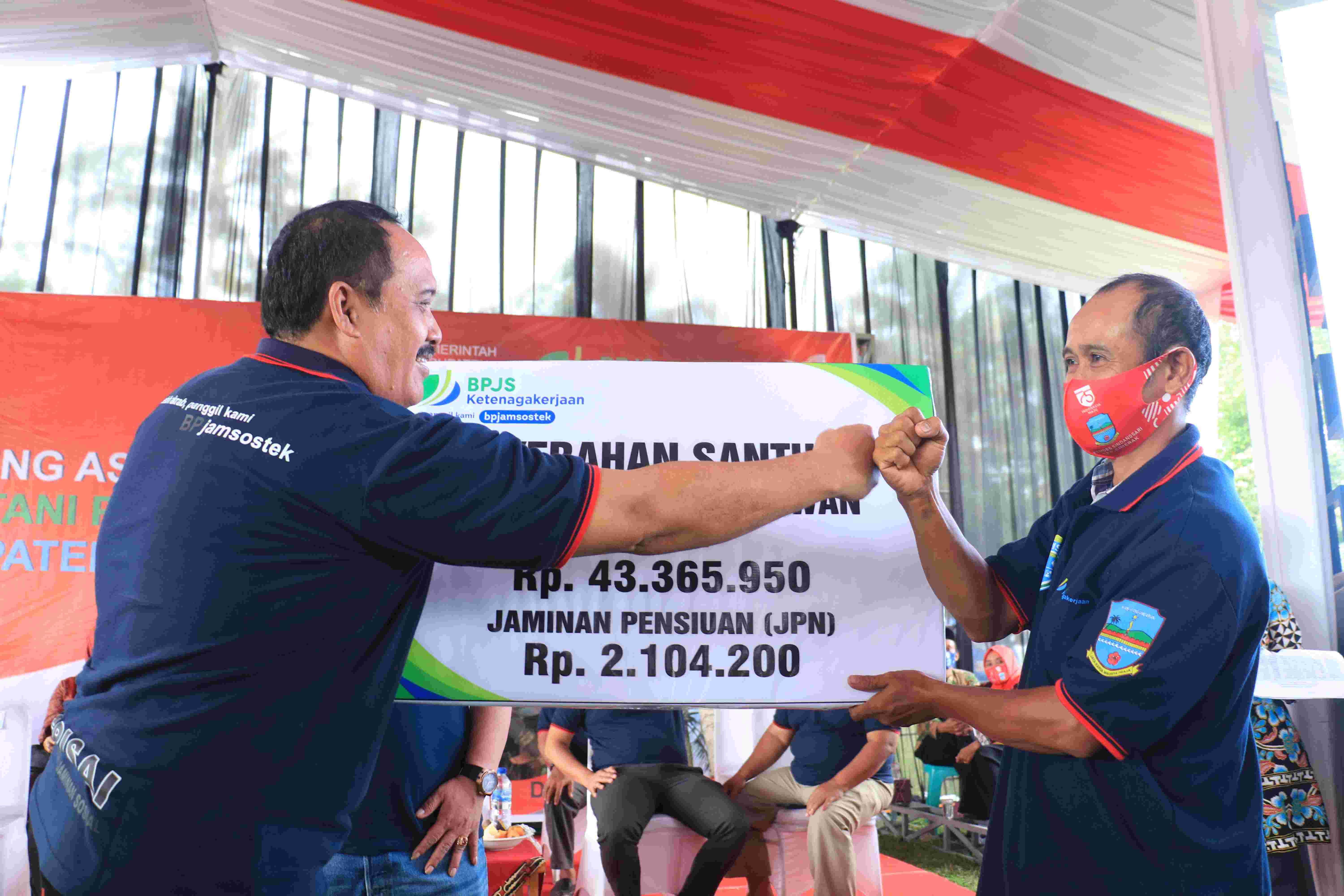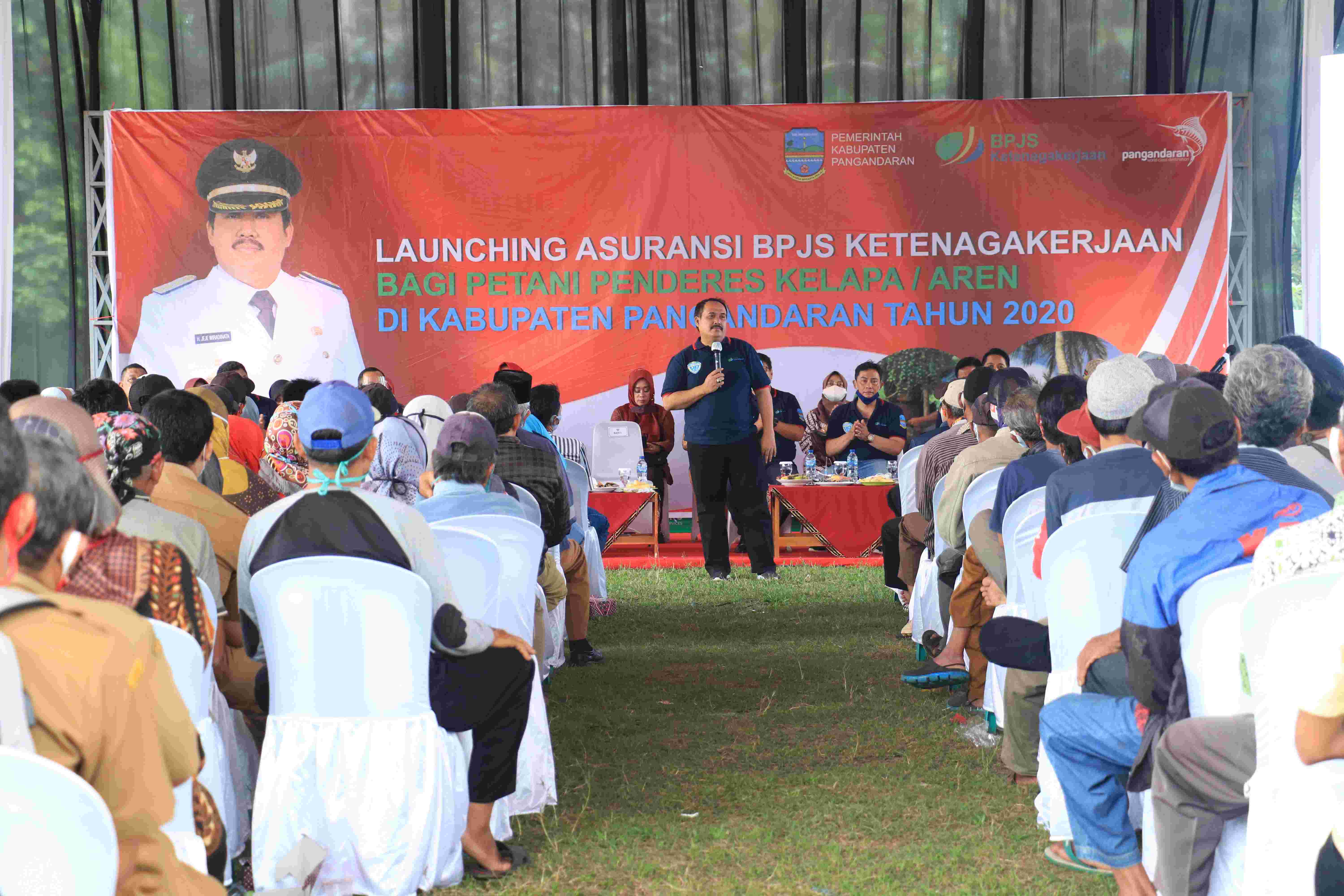 Bupati Pangandaran H. Jeje Wiradinata Launching Asuransi BPJS Ketenagakerjaan Bagi Penderes Kelapa Aren, di Kec. Cimerak. Senin, 21 September 2020.