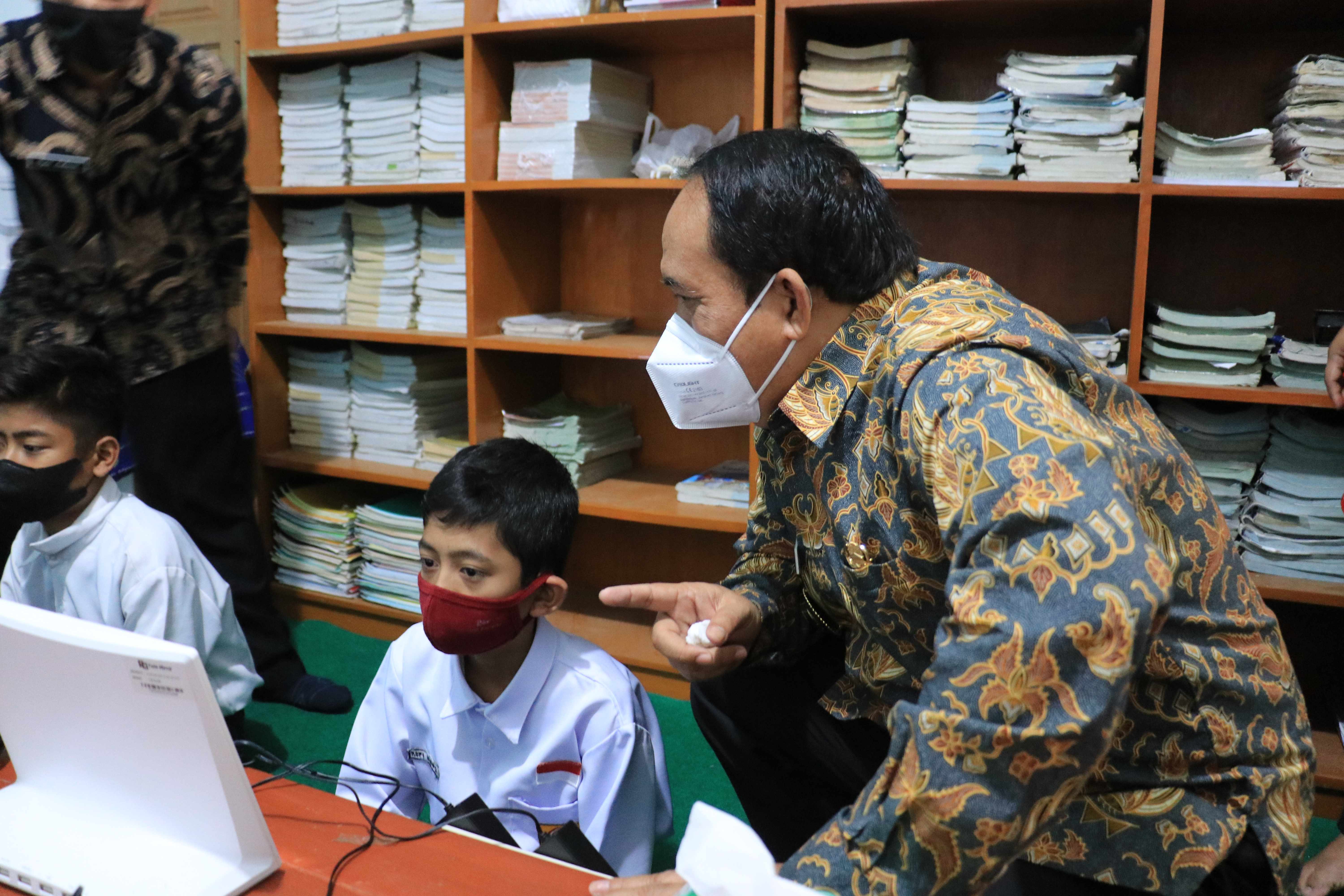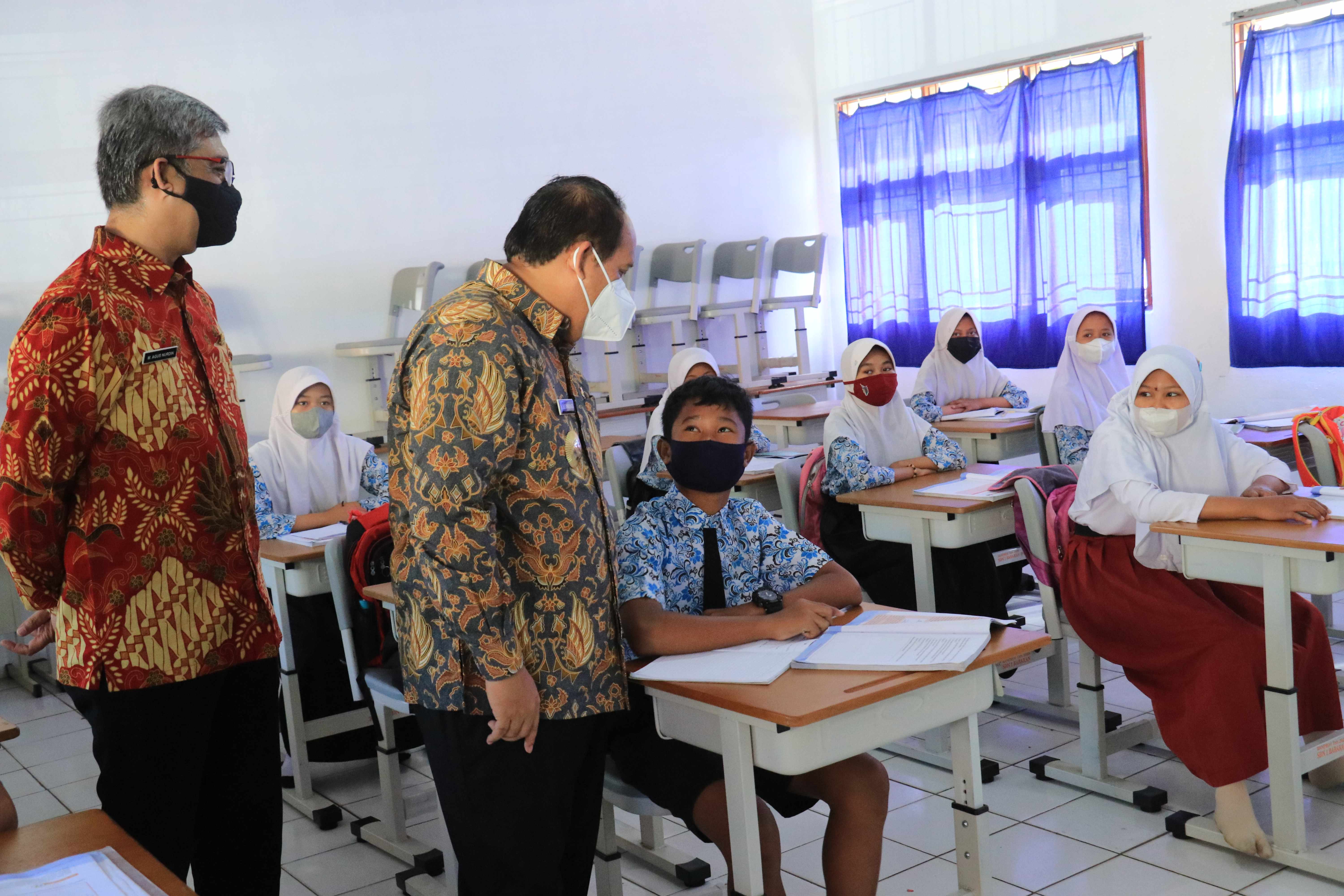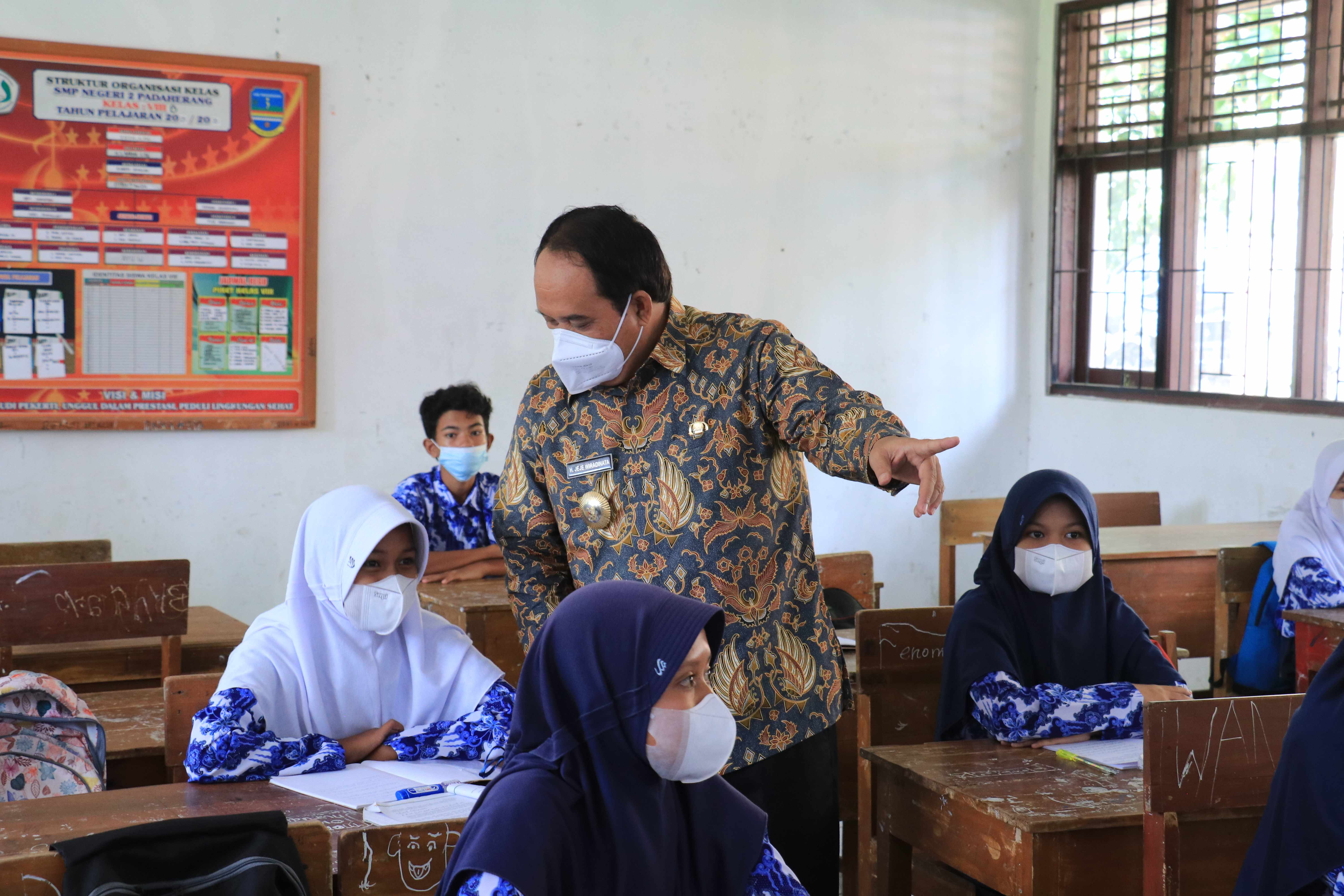 Bupati Pangandaran H. Jeje Wiradinata melaksanakan Monitoring Pembelajaran Tatap Muka Terbatas (PTMT). Kamis, 9 September 2021.