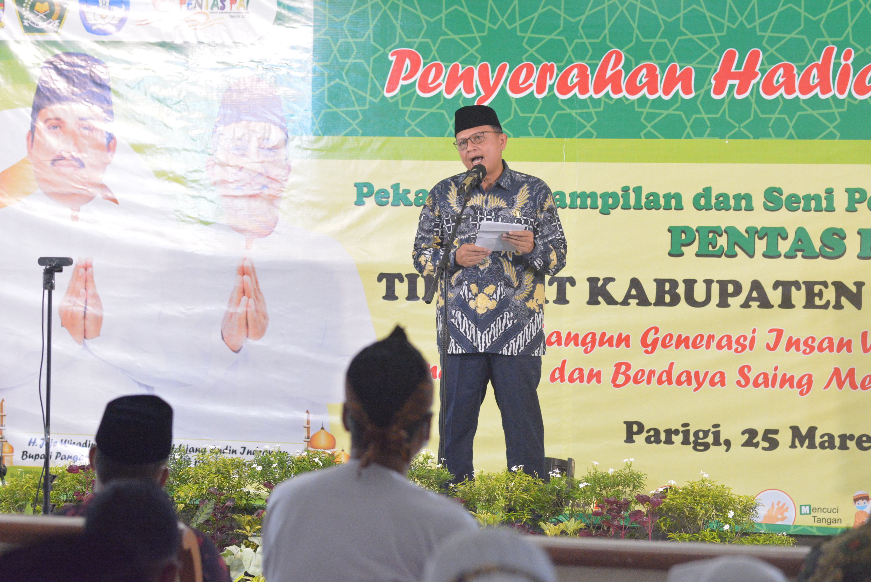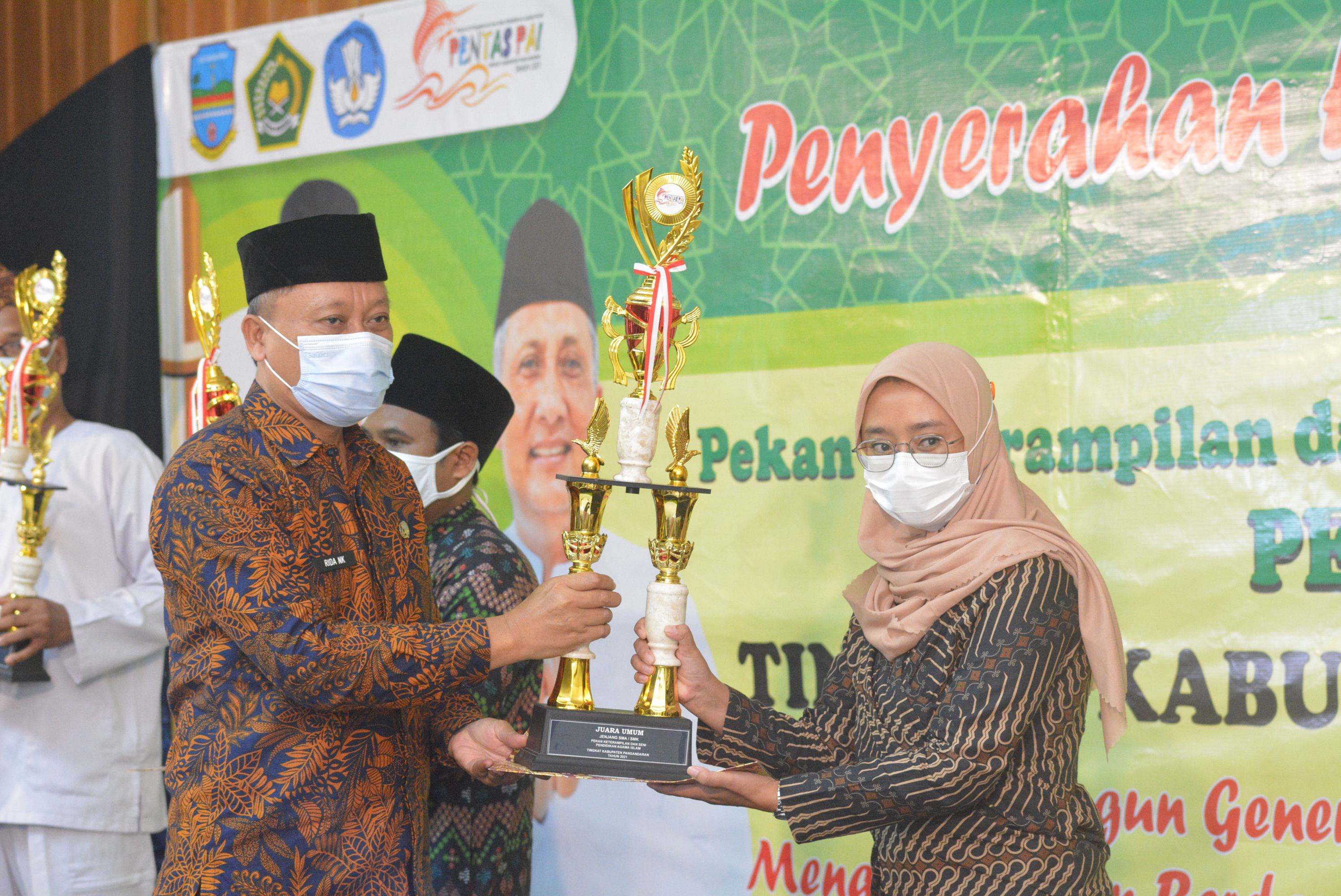 Sekda Kab. Pangandaran Drs. H. Kusdiana, M.M hadiri acara penutupan sekaligus penyerahan hadiah kejuaraan Pekan Keterampilan dan Seni Agama Islam (PENTAS PAI) Tingkat Kab. Pangandaran Tahun 2021, bertempat di Aula Setda Pangandaran. Kamis, 25 Maret 2021.