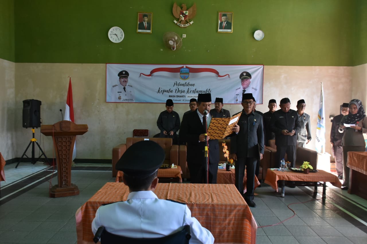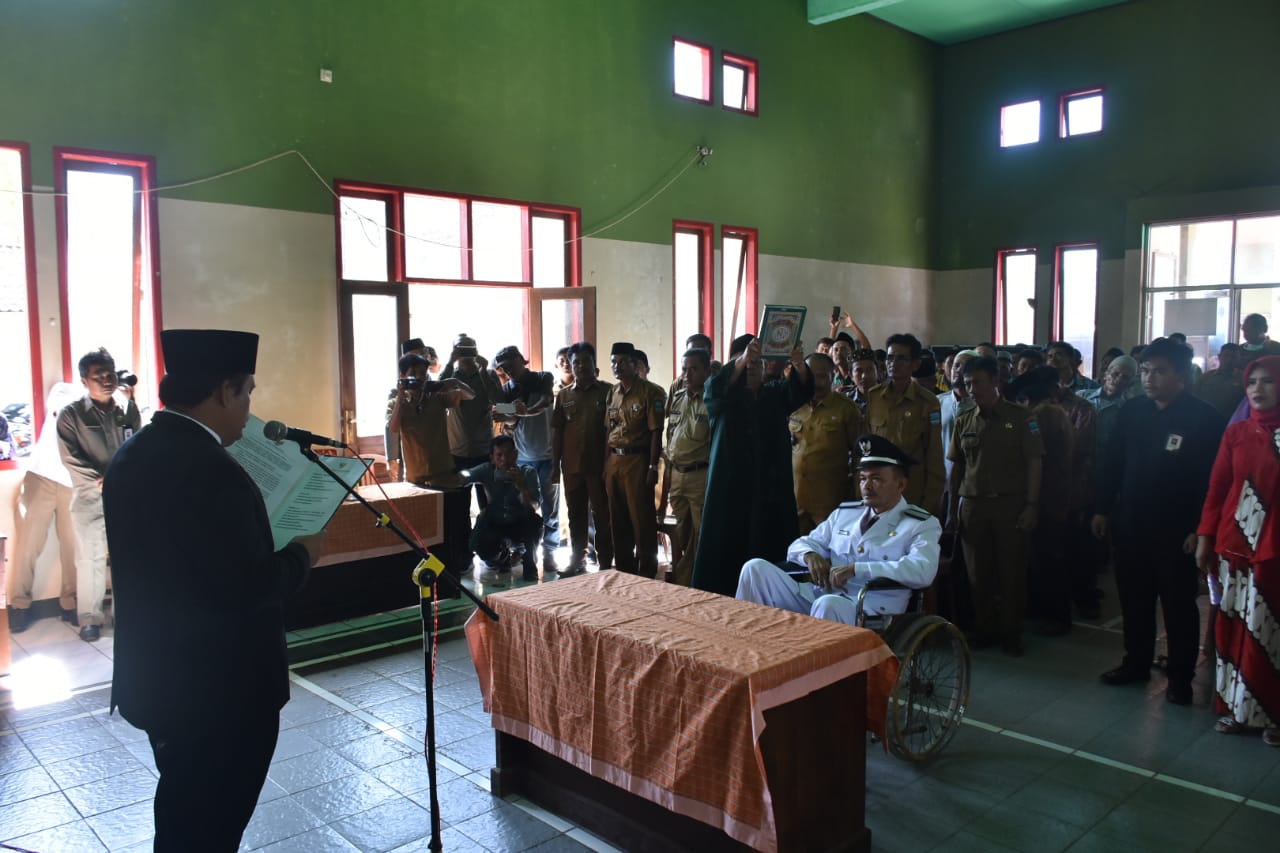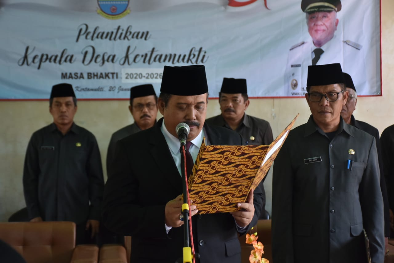 Bupati Pangandaran H. Jeje Wiradinata, Wakil Bupati Pangandaran H. Adang Hadari, Sekretaris Daerah Drs. Kusdiana MM, Asisten Bidang Pemerintahan dan Kesejahteraan Rakyat Rida Nirwana Kristiana S.Sos, MM, Asisten Bidang Administrasi Umum Drs. H. Suheryana, pejabat lingkup Kabupaten Pangandaran menghadiri Pelantikan Kepala Desa Kertamukti Kecamatan Cimerak, Asep Purnama, bertempat di Aula Desa Kertamukti, Kecamatan Cimerak. Senin, 20 Januari 2020.