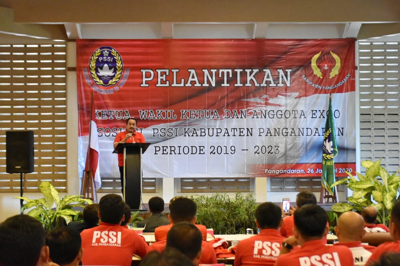 Bupati Pangandaran H. Jeje Wiradinata hadiri Pelantikan Pengurus Asosiasi PSSI Kabupaten Pangandaran Periode 2019-2023, bertempat di Hotel Pantai Indah Timur Pangandaran. Minggu, 26 Januari 2020.