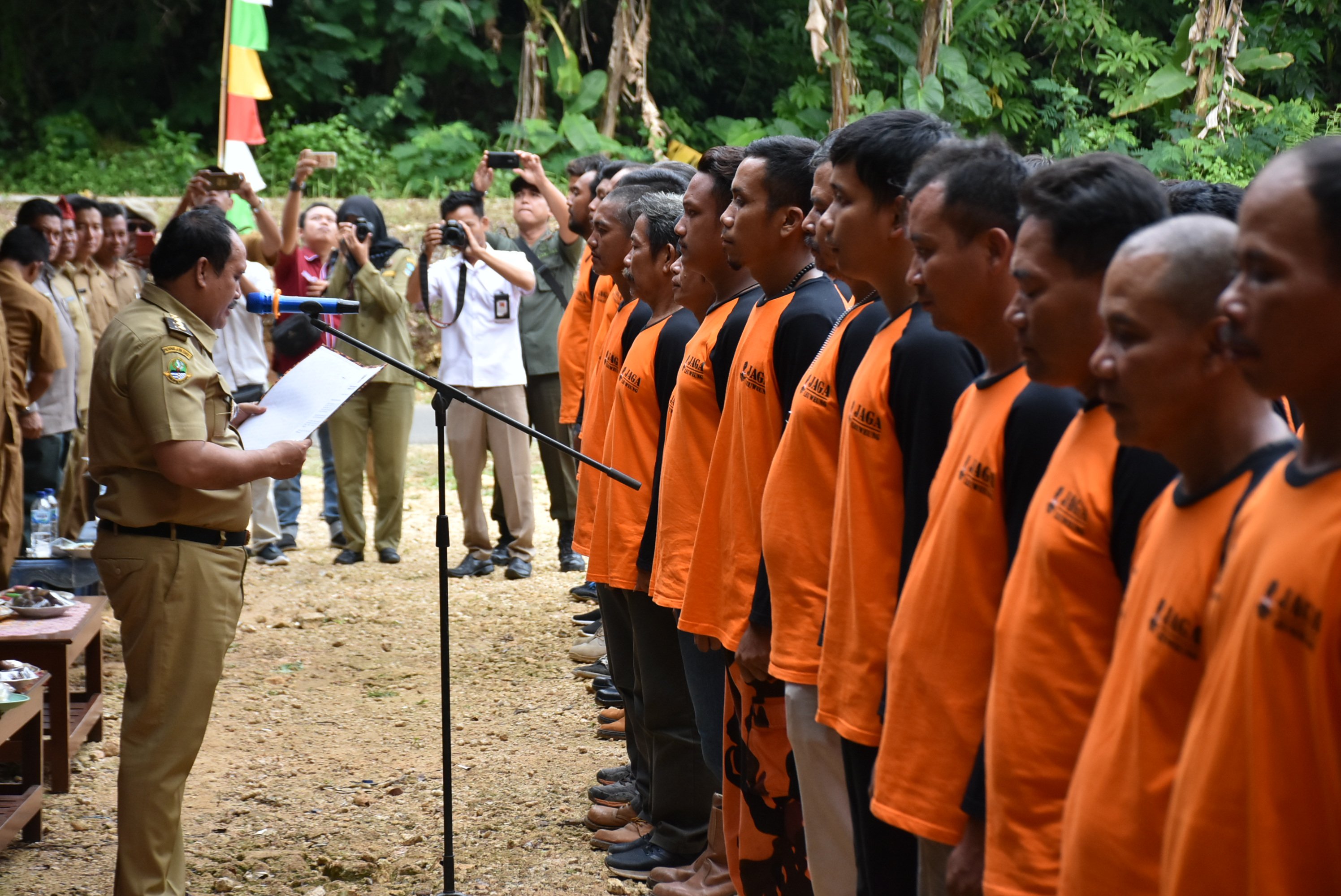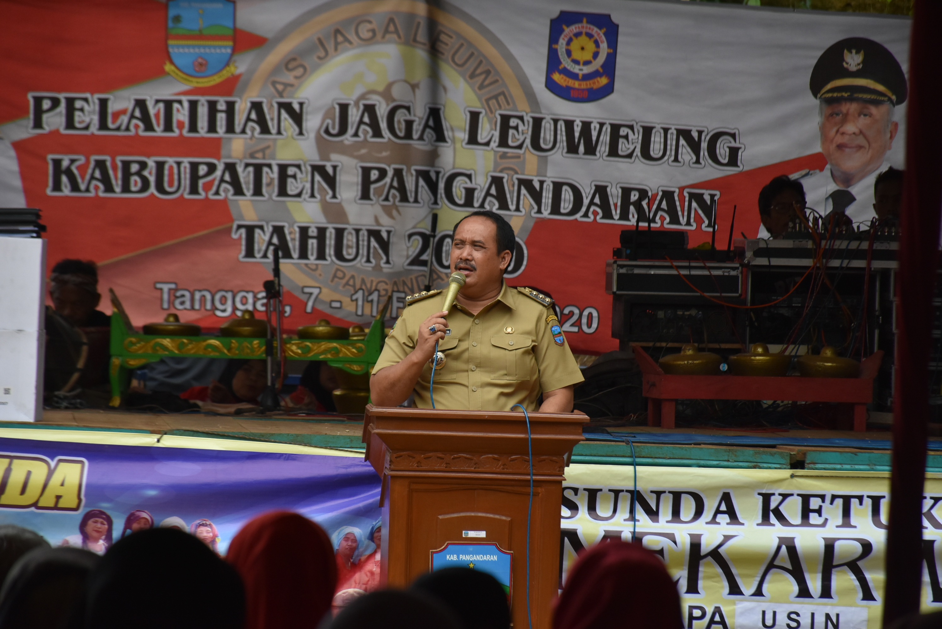 Bupati Pangandaran H. Jeje Wiradinata Menutup Kegiatan Pelatihan Jaga Leuweung Kabupaten Pangandaran. Selasa, 11 Februari 2020.