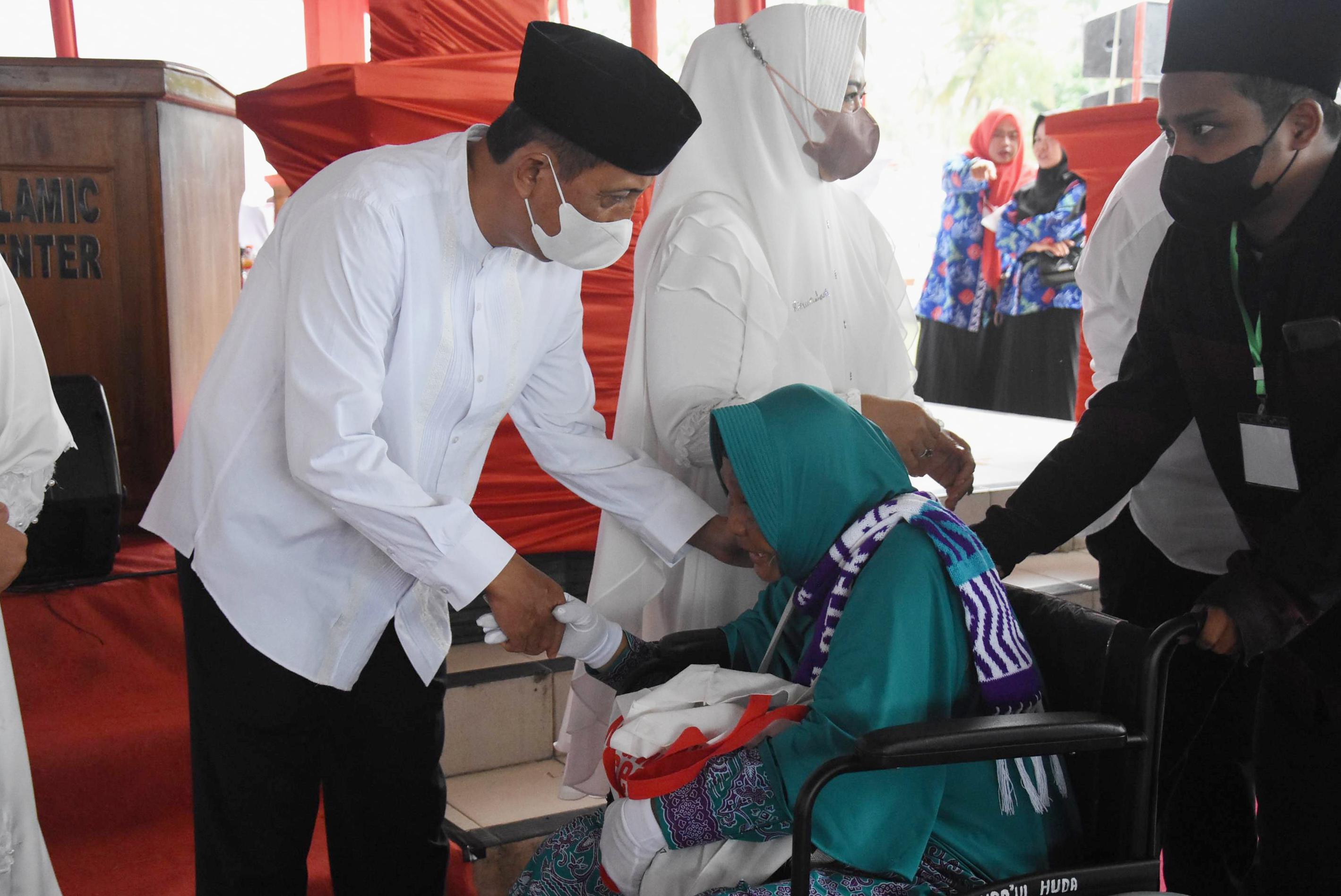 Bupati Pangandaran H. Jeje Wiradinata didampingi Wakil Bupati Pangandaran H. Ujang Endin Indrawan menghadiri acara Pelepasan dan Pemberangkatan Haji Kabupaten Pangandaran Tahun 1443 H/2022 M, bertempat di Bumi Perkemahan Kwarcab Pangandaran Pamugaran. Minggu, 26/6/2022.