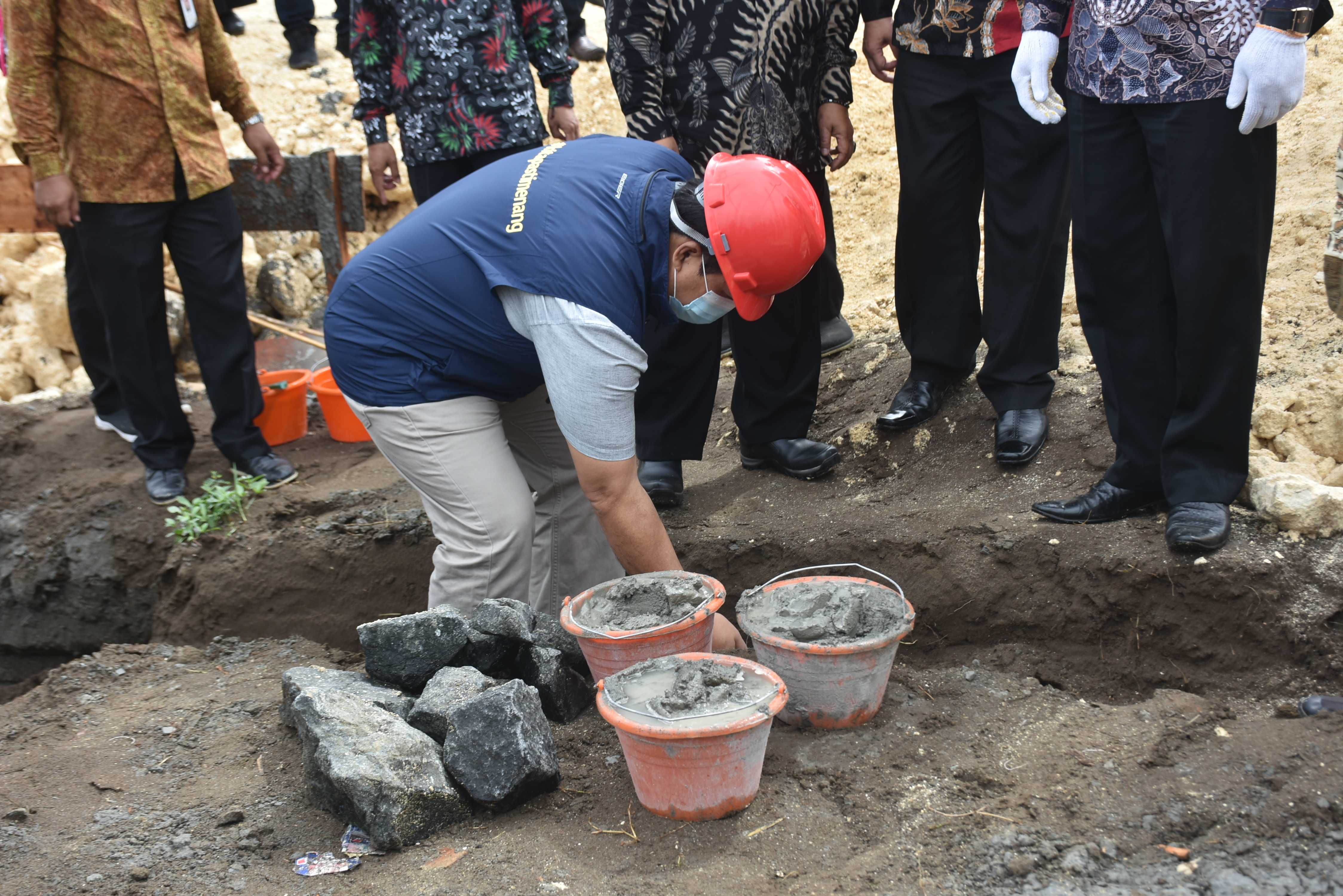 Peletakan Batu Pertama Pembangunan Ruang Kelas Baru MTS Negeri 1 Pangandaran. Kamis, 13 Agustus 2020.