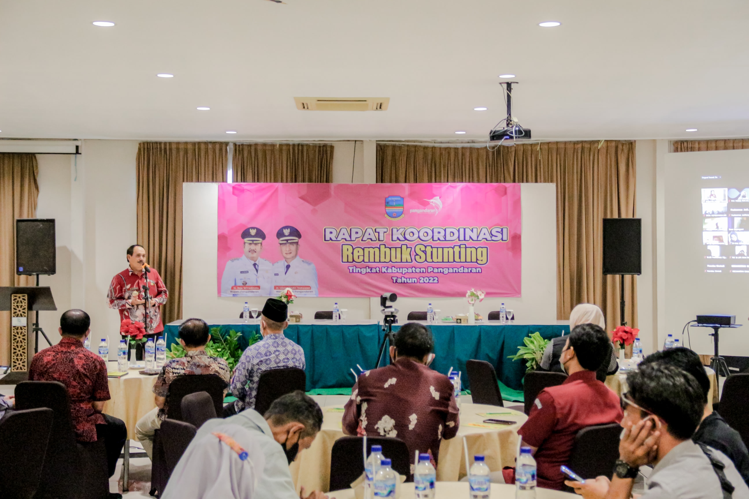 Bupati Pangandaran H. Jeje Wiradinata dan Wakil Bupati Pangandaran H. Ujang Endin Indrawan hadiri Rapat Koordinasi Rembuk Stunting Tingkat Kabupaten Pangandaran sekaligus Pembentukan dan Pengukuhan Tim Percepatan Penurunan Stunting (TPPS) Kabupaten Pangandaran. Kamis, 23 Juni 2022.