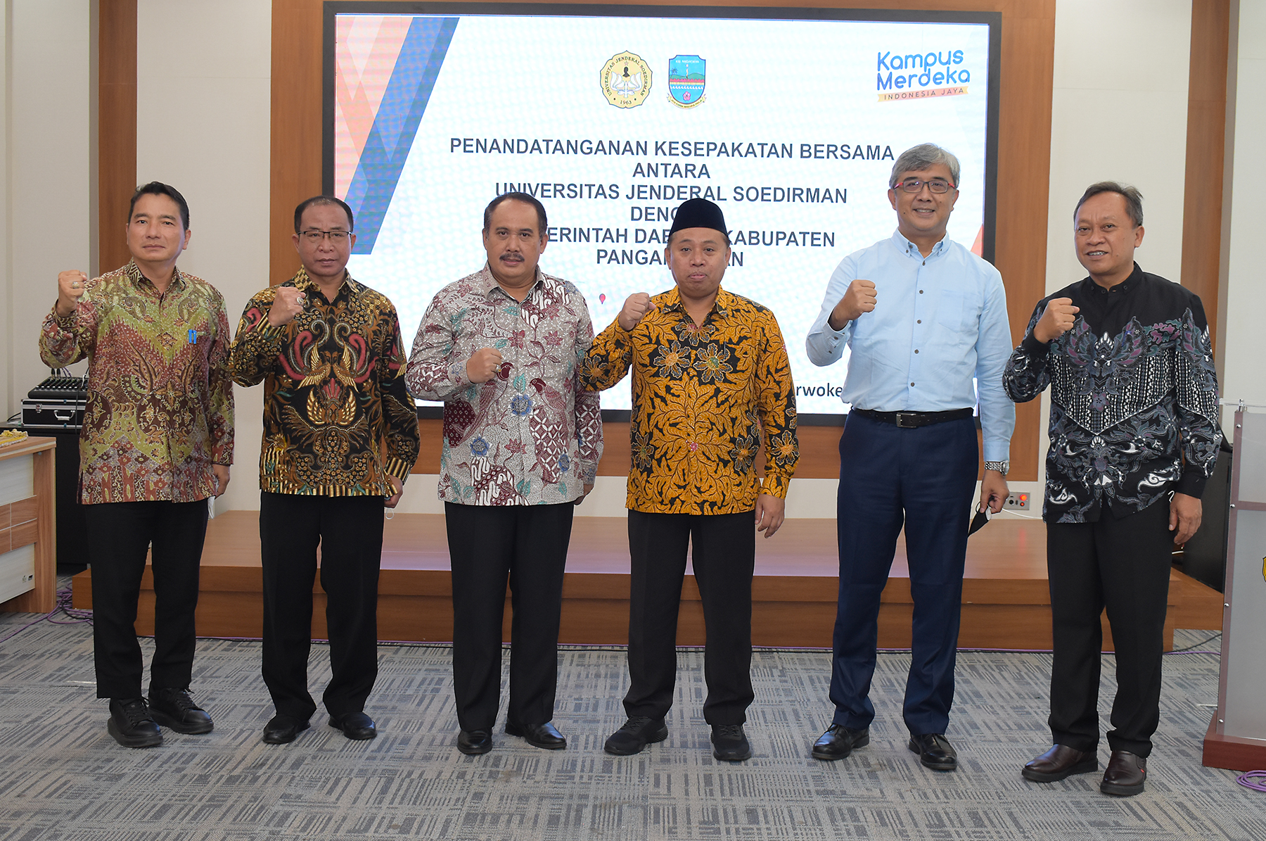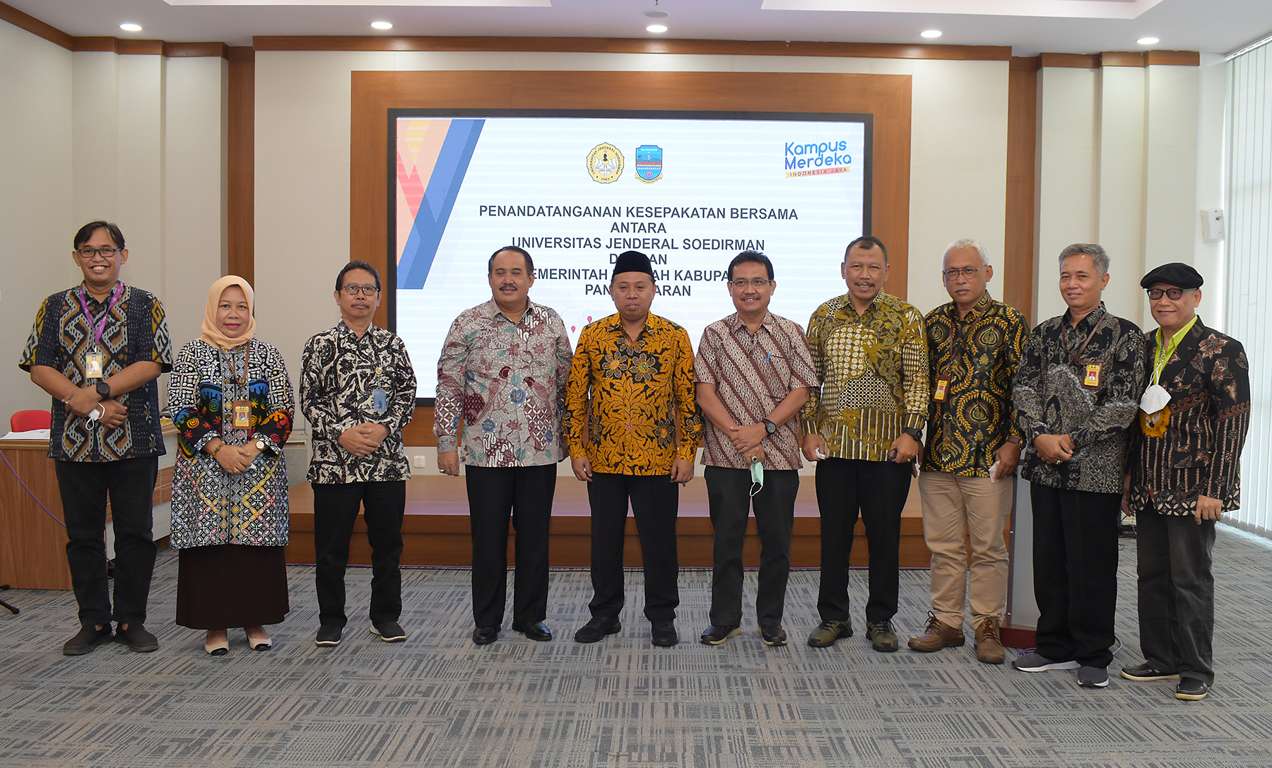 Bupati Pangandaran H. Jeje Wiradinata menghadiri penandatanganan kesepakatan bersama antara Universitas Jenderal Soedirman dan Pemerintah Kabupaten Pangandaran terkait peningkatan fungsi pendidikan, penelitian dan pengabdian kepada masyarakat, bertempat di Gedung Integrated Academic Building Unsoed Purwokerto pada Jum’at (03/06/2022).
