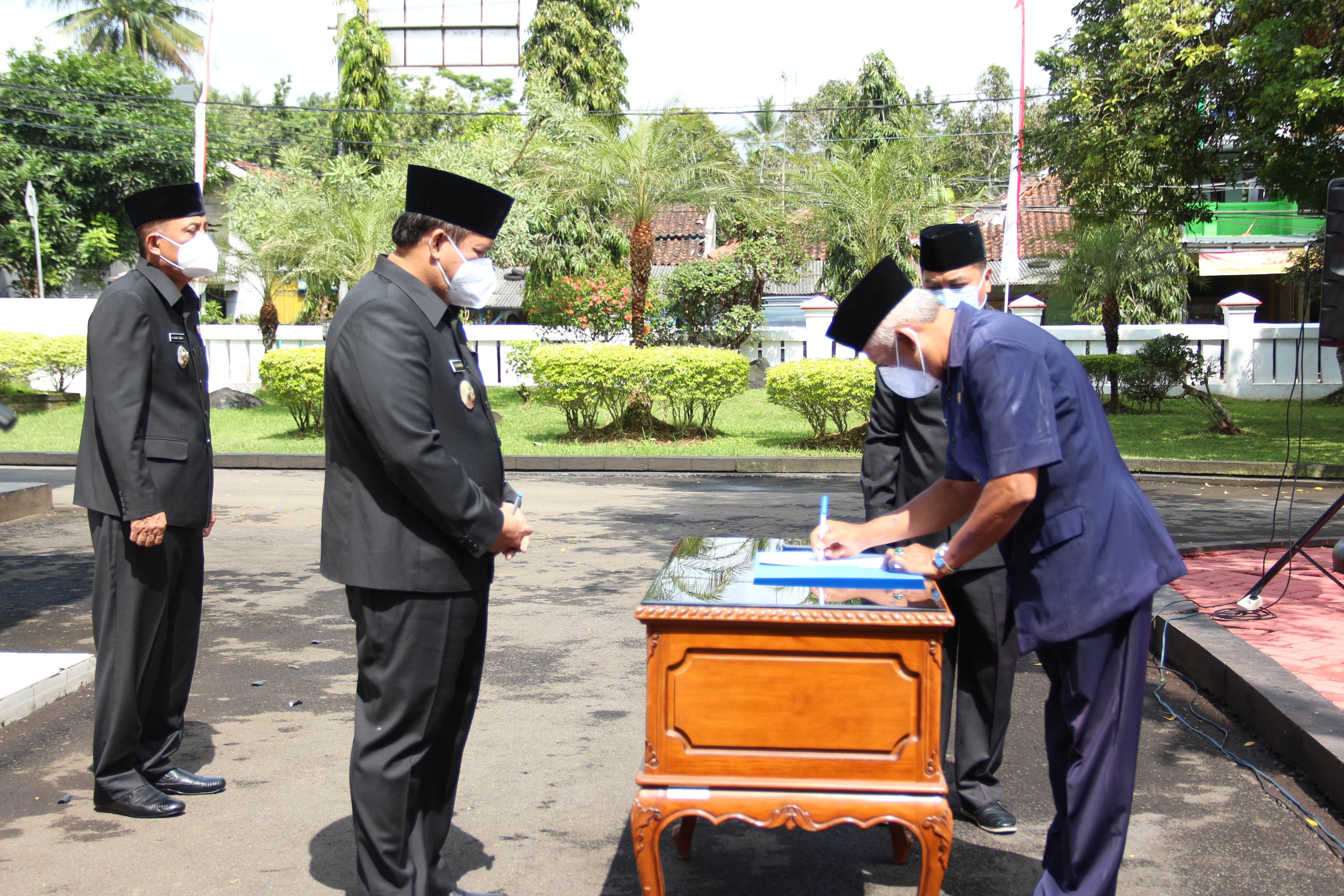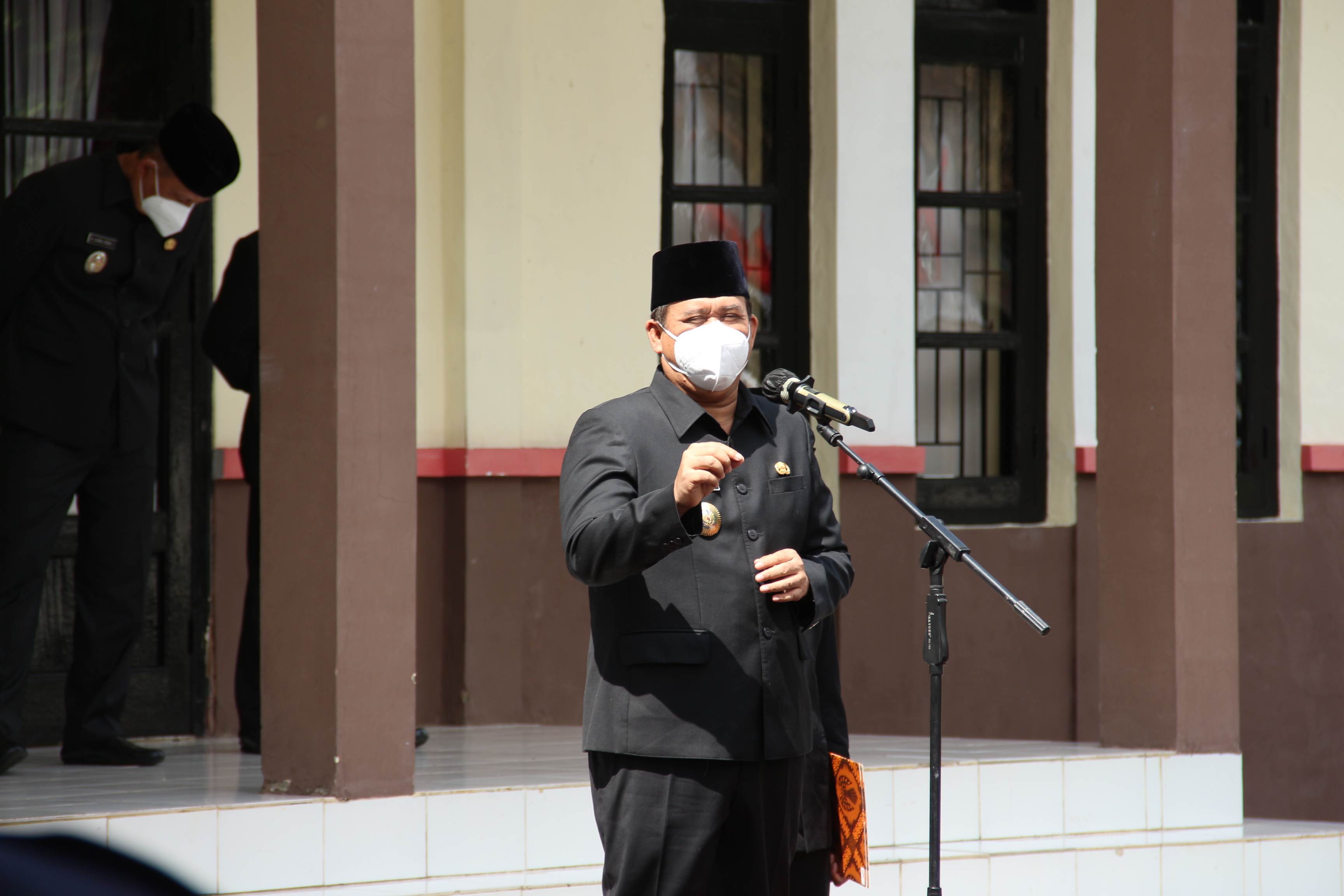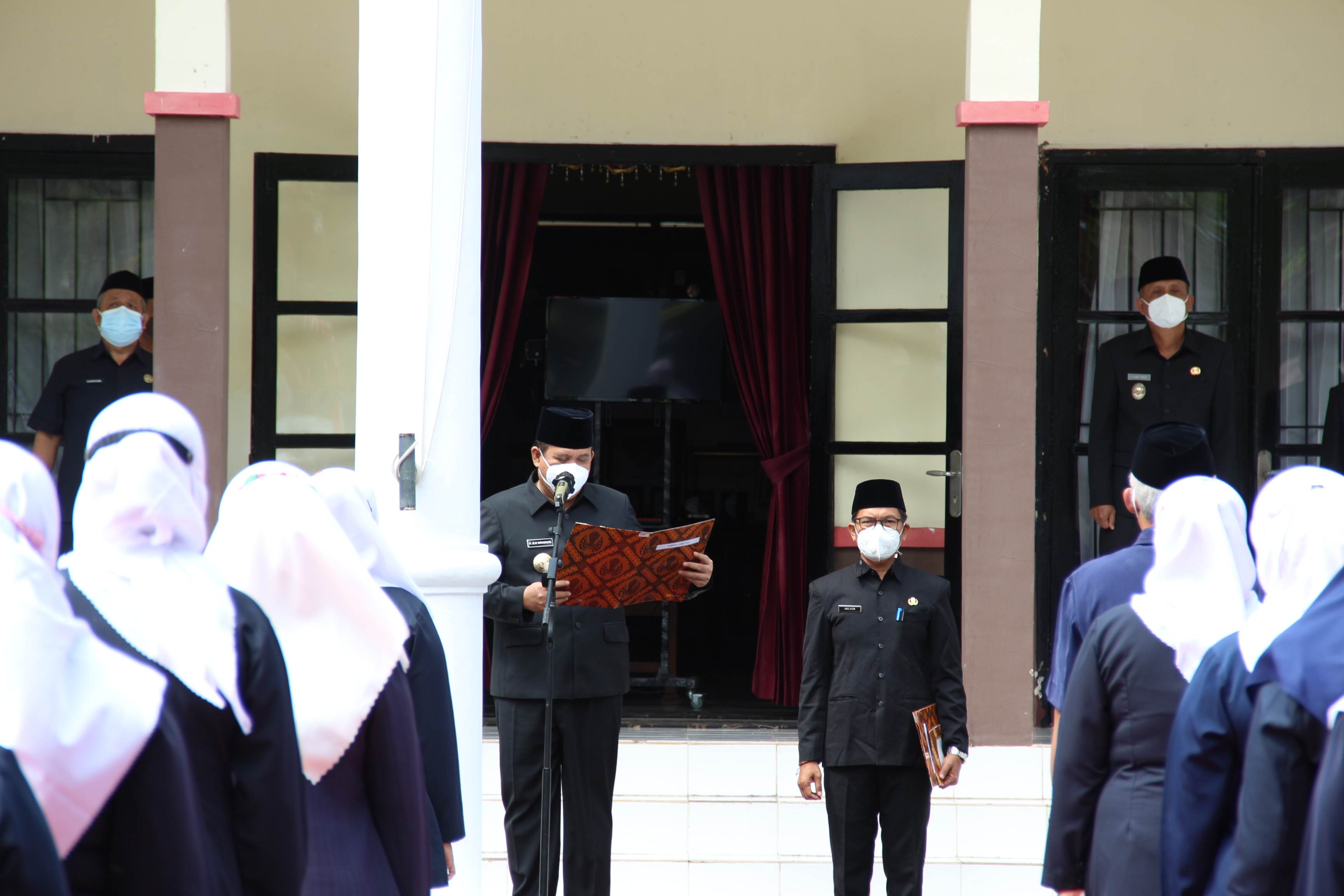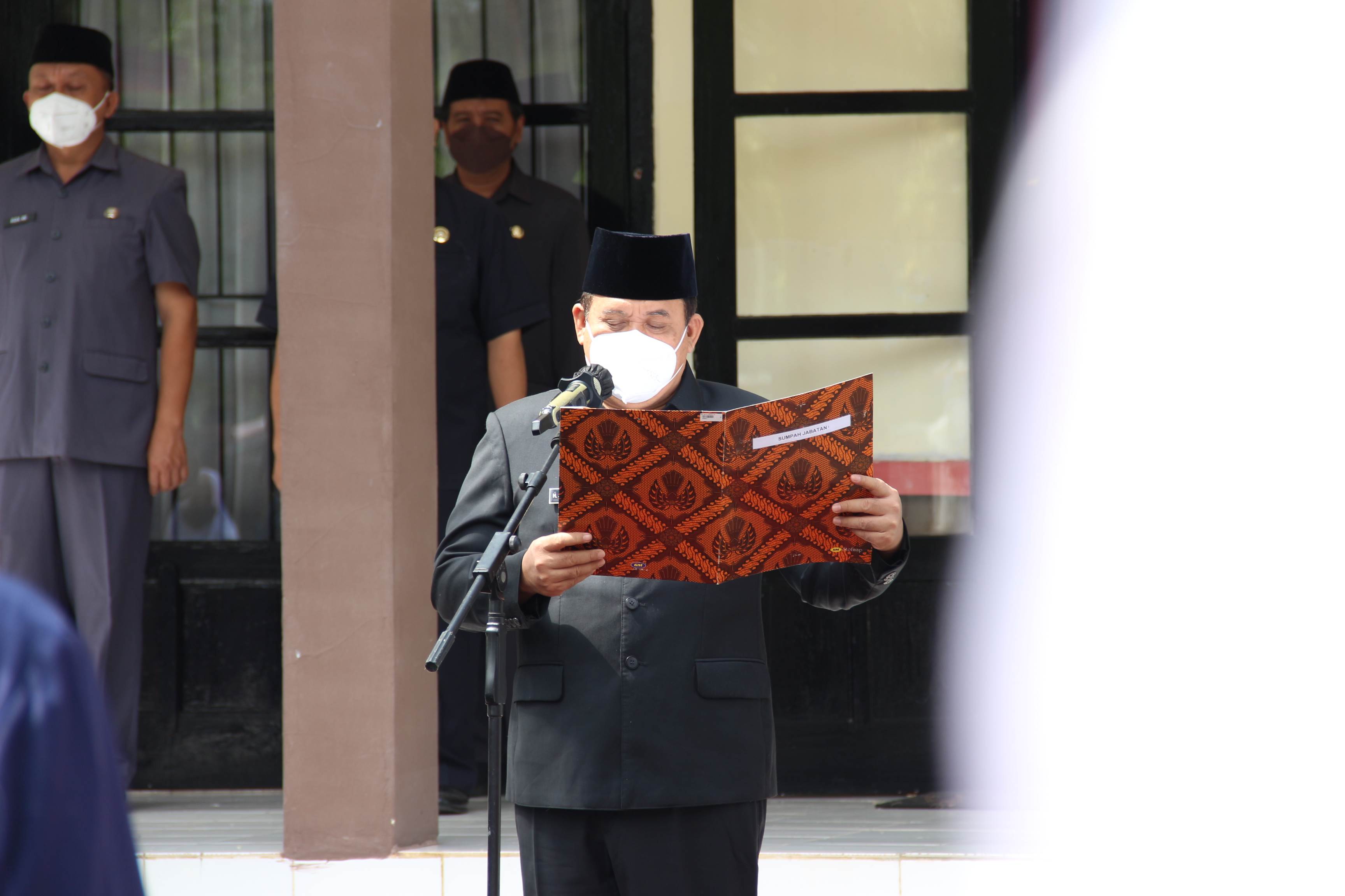 Bupati Pangandaran H. Jeje Wiradinata mengambil Sumpah Jabatan Kepala Sekolah di Lingkungan Pemerintah Kabupaten Pangandaran, bertempat di Halaman Kantor Bupati Pangandaran. Kamis, 7 Oktober 2021.