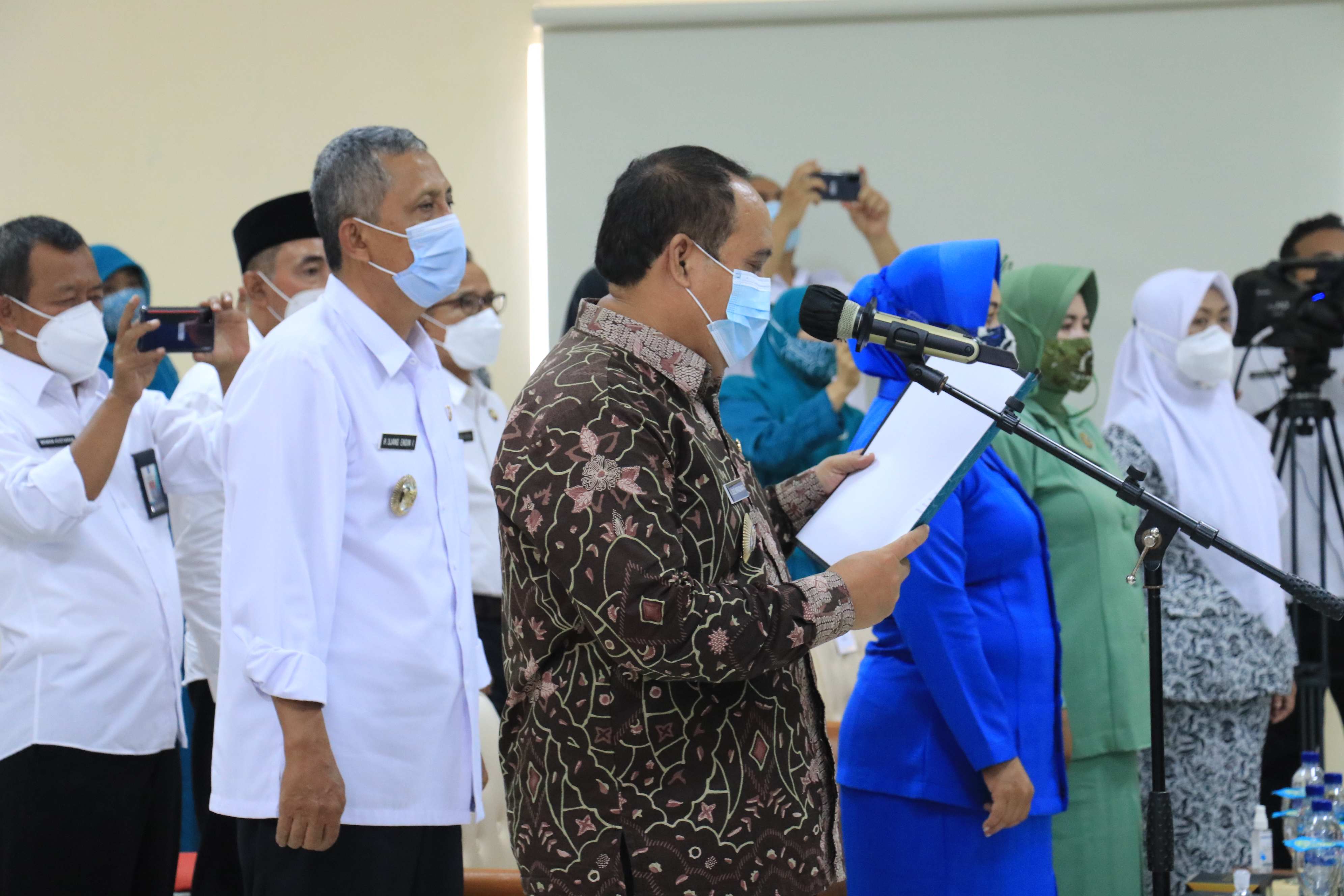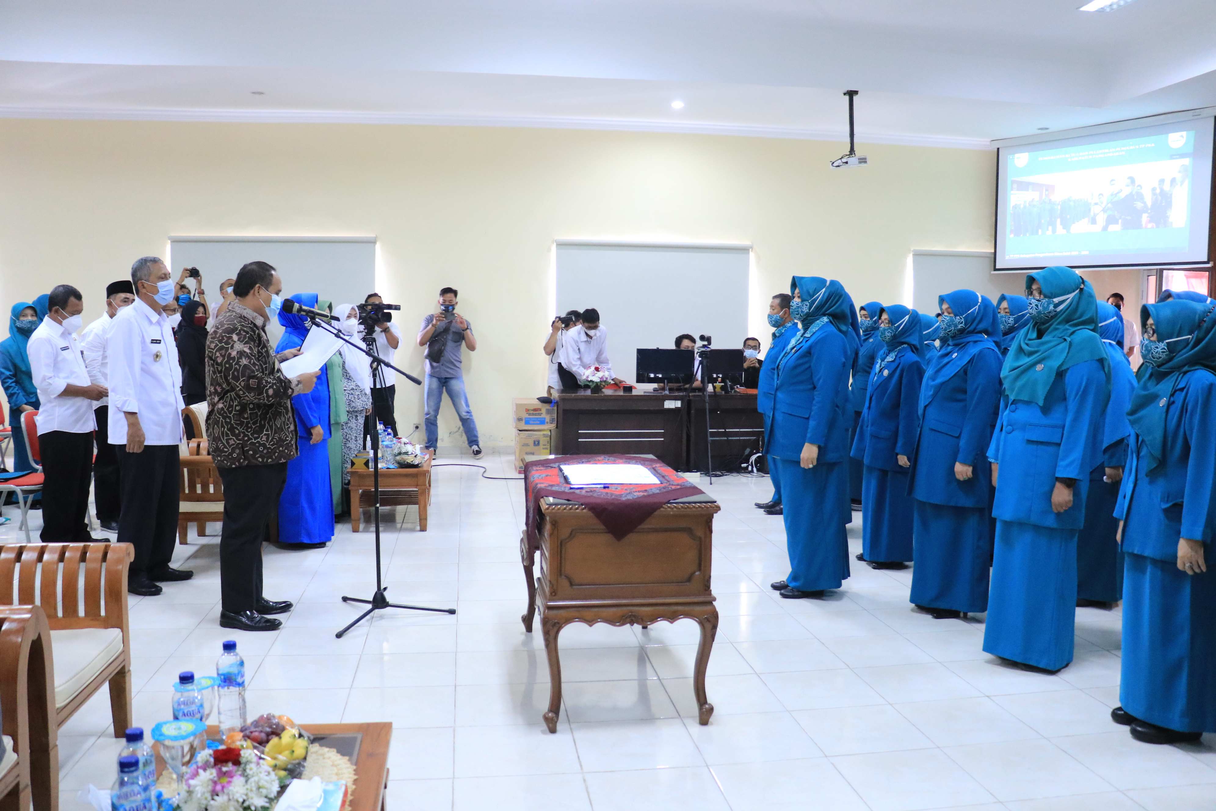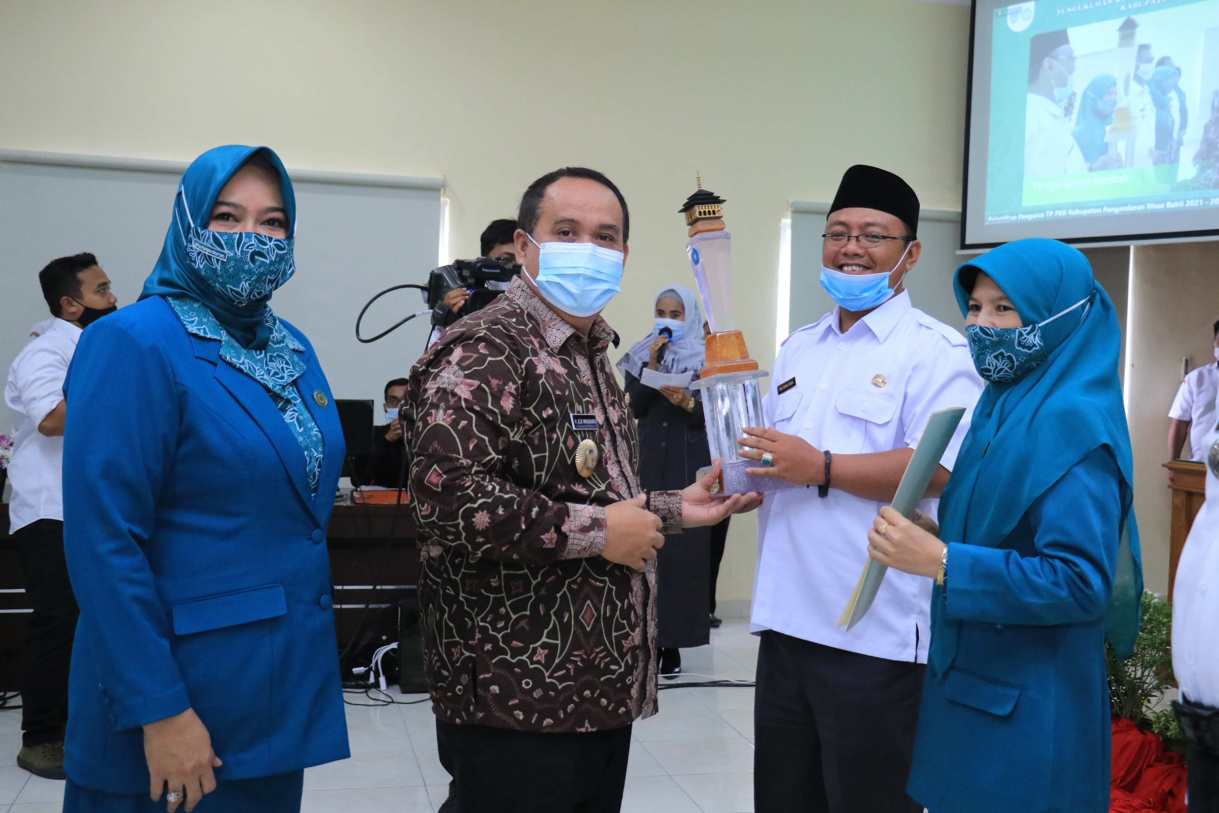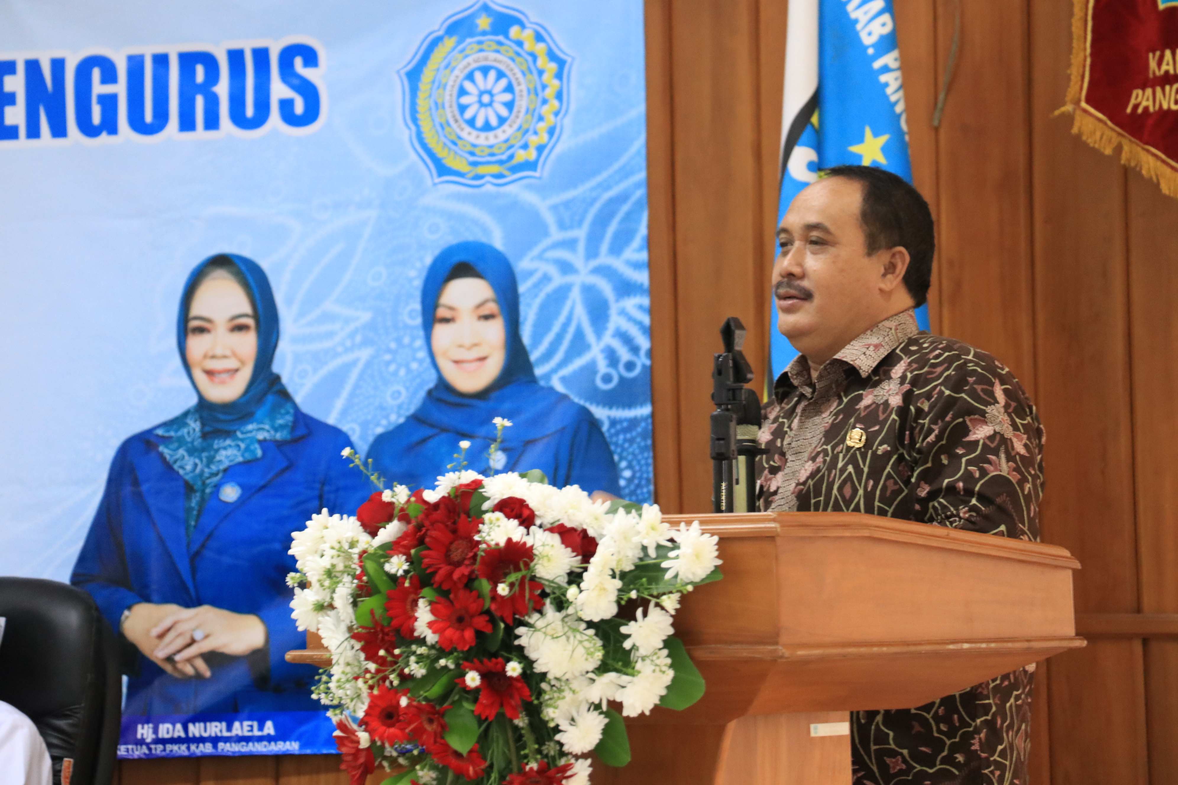 Bupati Pangandaran H. Jeje Wiradinata mengukuhkan Ketua dan melantik TP PKK Kabupaten Pangandaran Masa Bakti 2021 - 2026, bertempat di Aula Setda Pangandaran. Rabu, 7 April 2021.