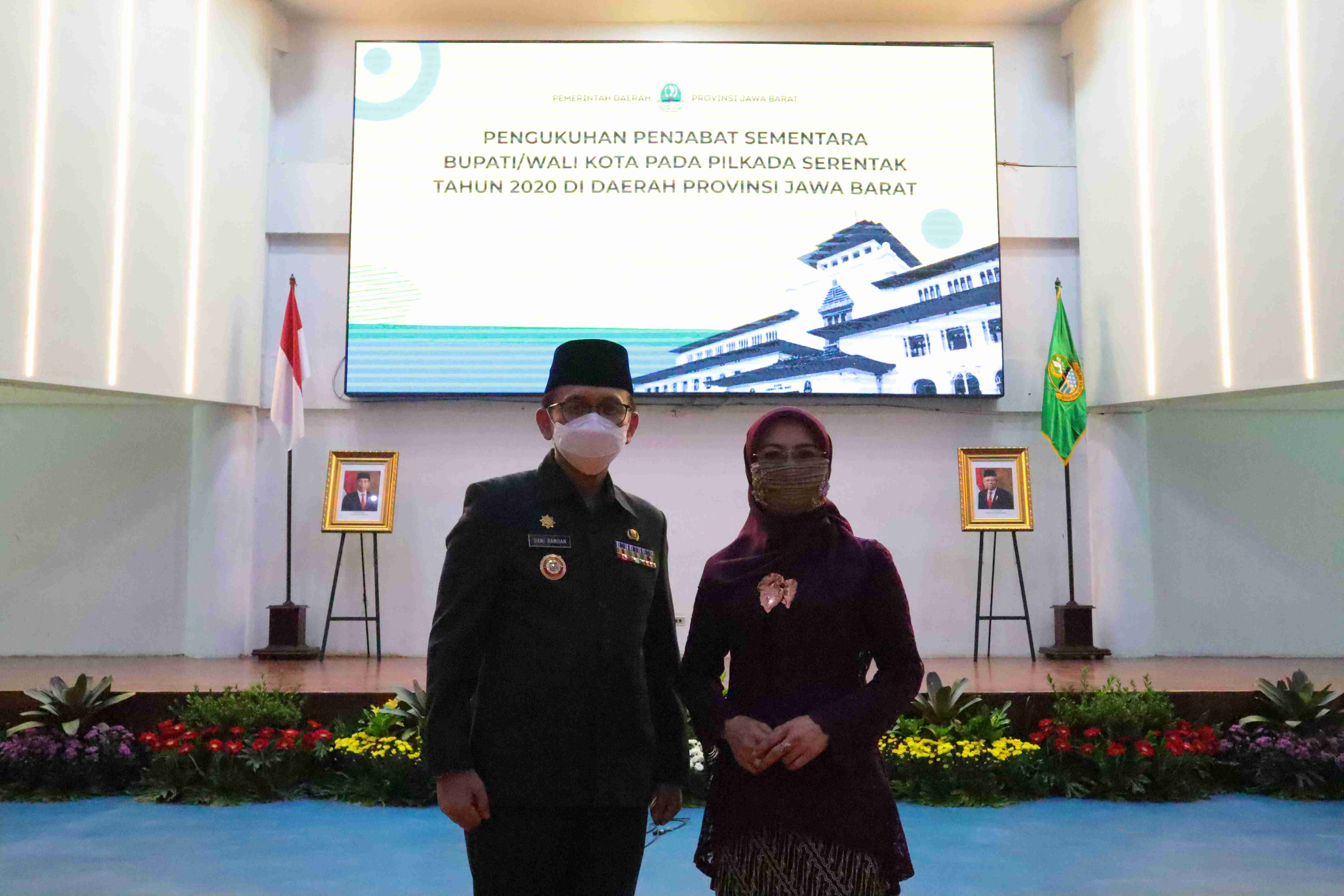 Pengukuhan Penjabat Sementara Bupati Pangandaran Dr. H. Dani Ramdan, M.T oleh Gubernur Jawa Barat M. Ridwan Kamil, bertempat di Youth Centre Arcamanik Bandung. 25 September 2020.