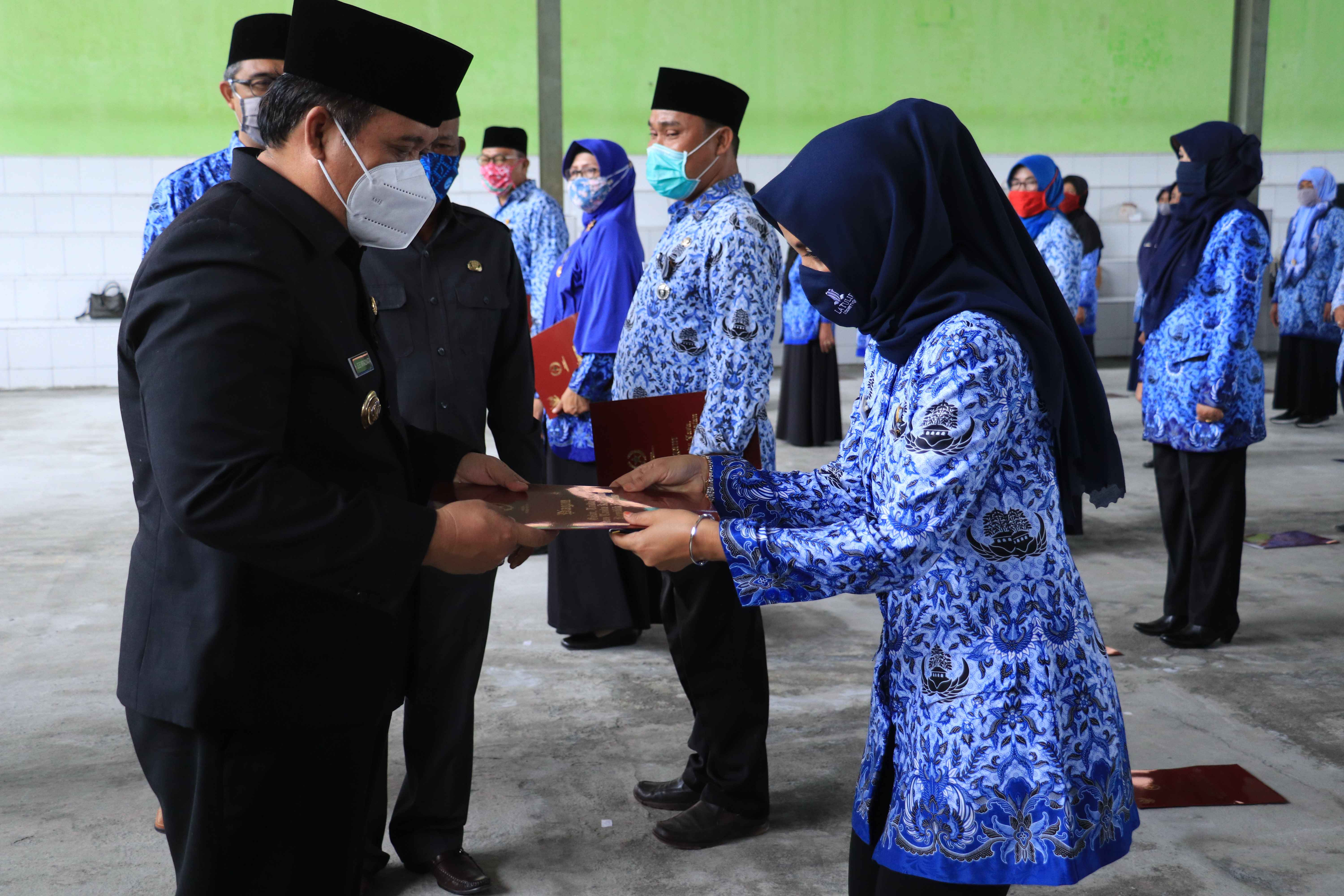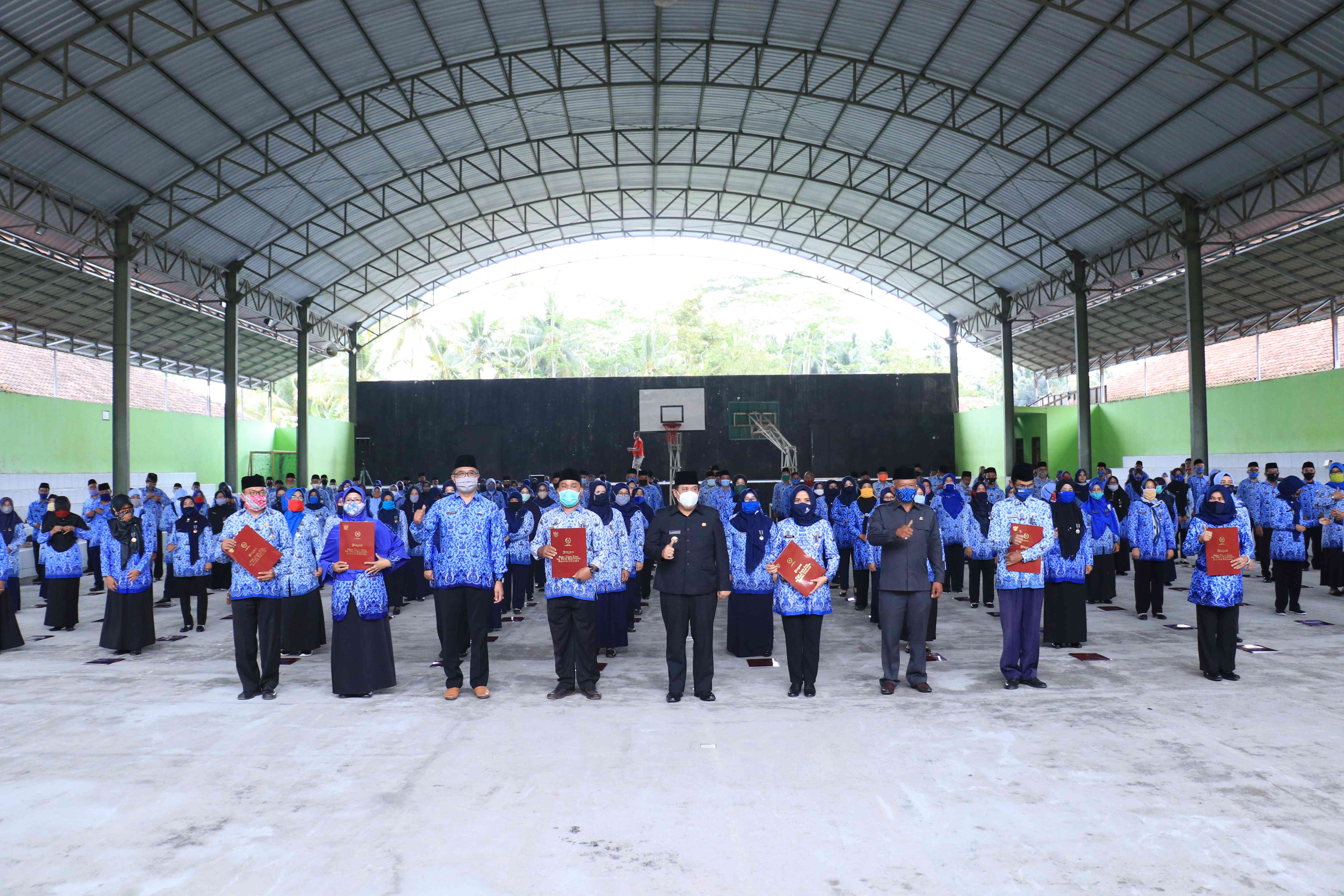 Bupati Pangandaran H. Jeje Wiradinata giat Penyerahan Satya Lencana Karya Satya, bertempat di GOR SMAN 1 Parigi. Senin, 31 Agustus 2020.