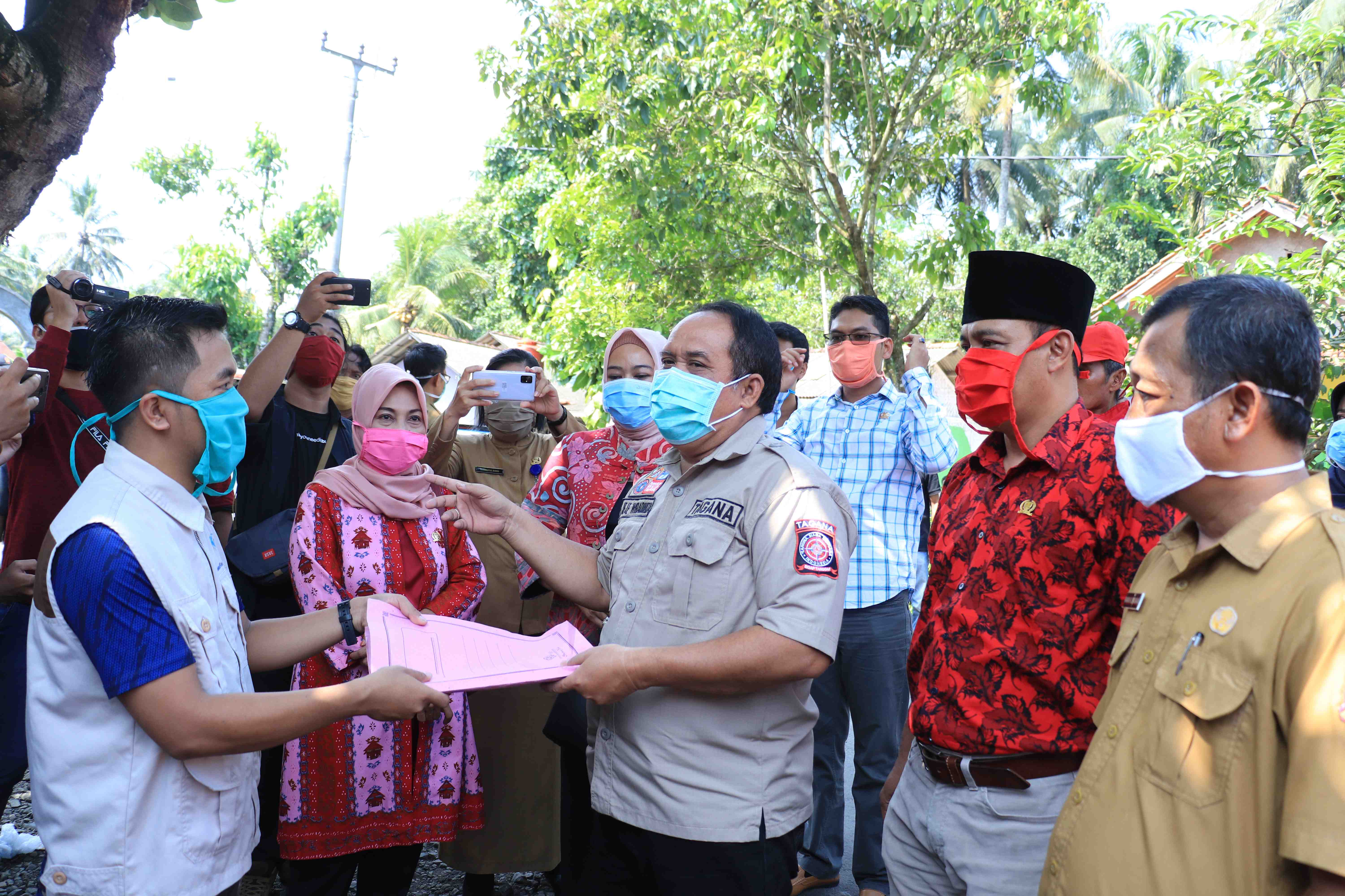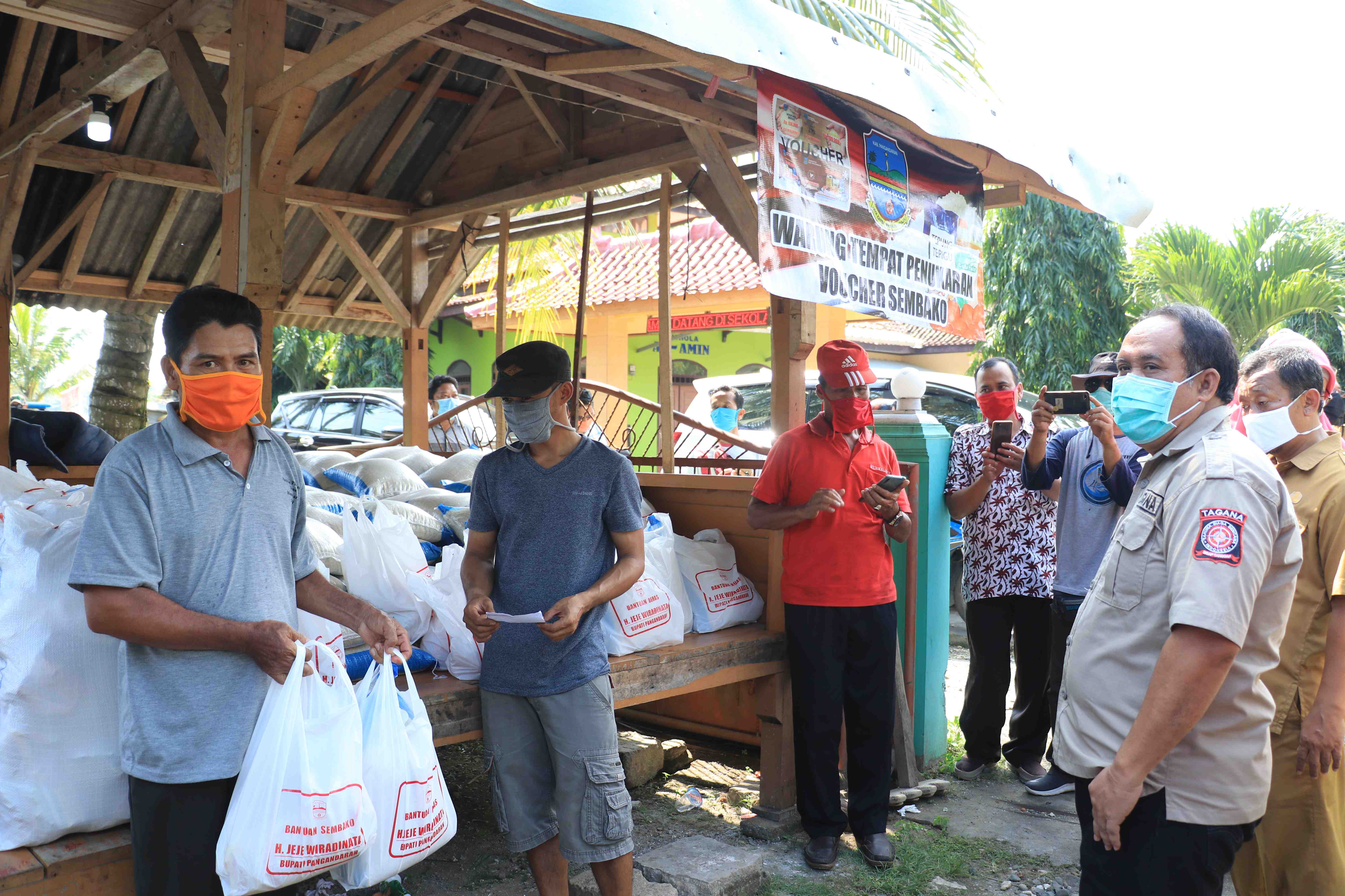 Bupati Pangandaran H. Jeje Wiradinata menyerahkan secara simbolis Bantuan Jaminan Pengaman Sosial. Senin, 20 April 2020.