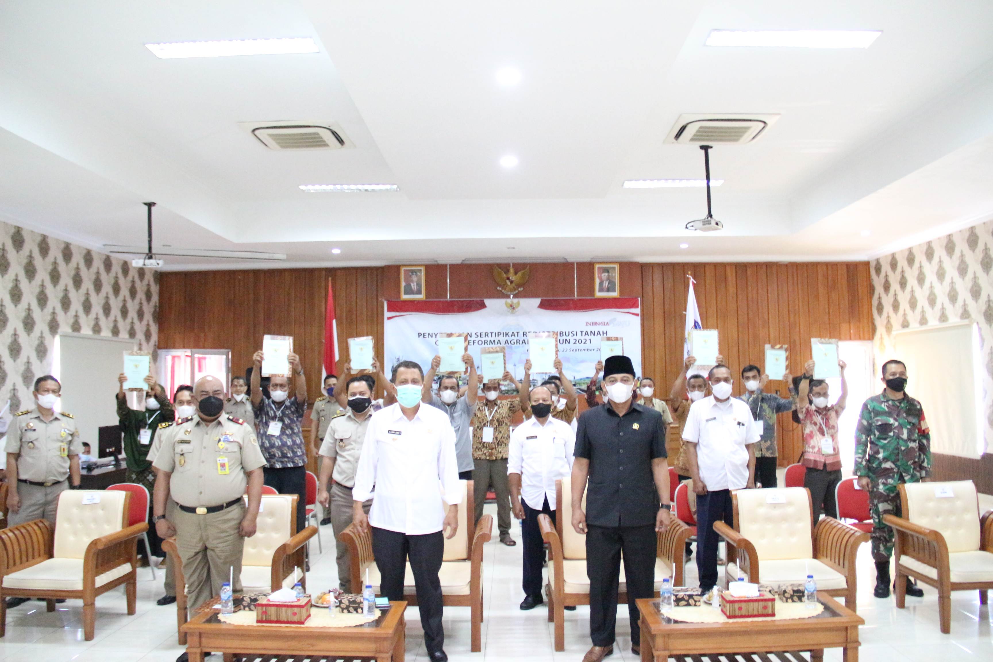 Wakil Bupati Pangandaran H. Ujang Endin Indrawan hadiri acara Penyerahan Sertifikat Redistribusi Tanah oleh Presiden RI secara virtual, sekaligus menyerahkan sertifikat redistribusi tanah secara simbolis kepada penerima redistribusi tanah, bertempat di Aula Setda Pangandaran. Rabu, 22 September 2021.