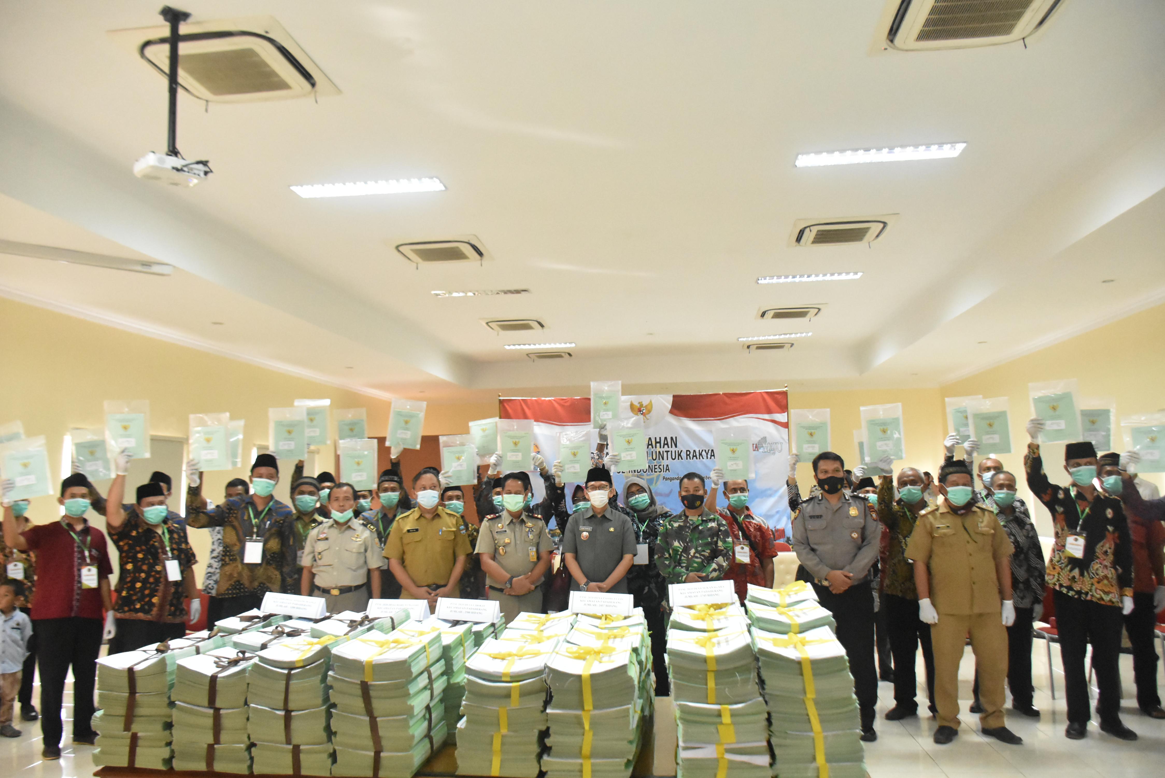Pjs. Bupati Pangandaran Dr. H. Dani Ramdan, M.T hadiri Penyerahan Sertifikat Tanah Untuk Rakyat, bertempat di Aula Setda Kab. Pangandaran. Selasa, 9 November 2020.