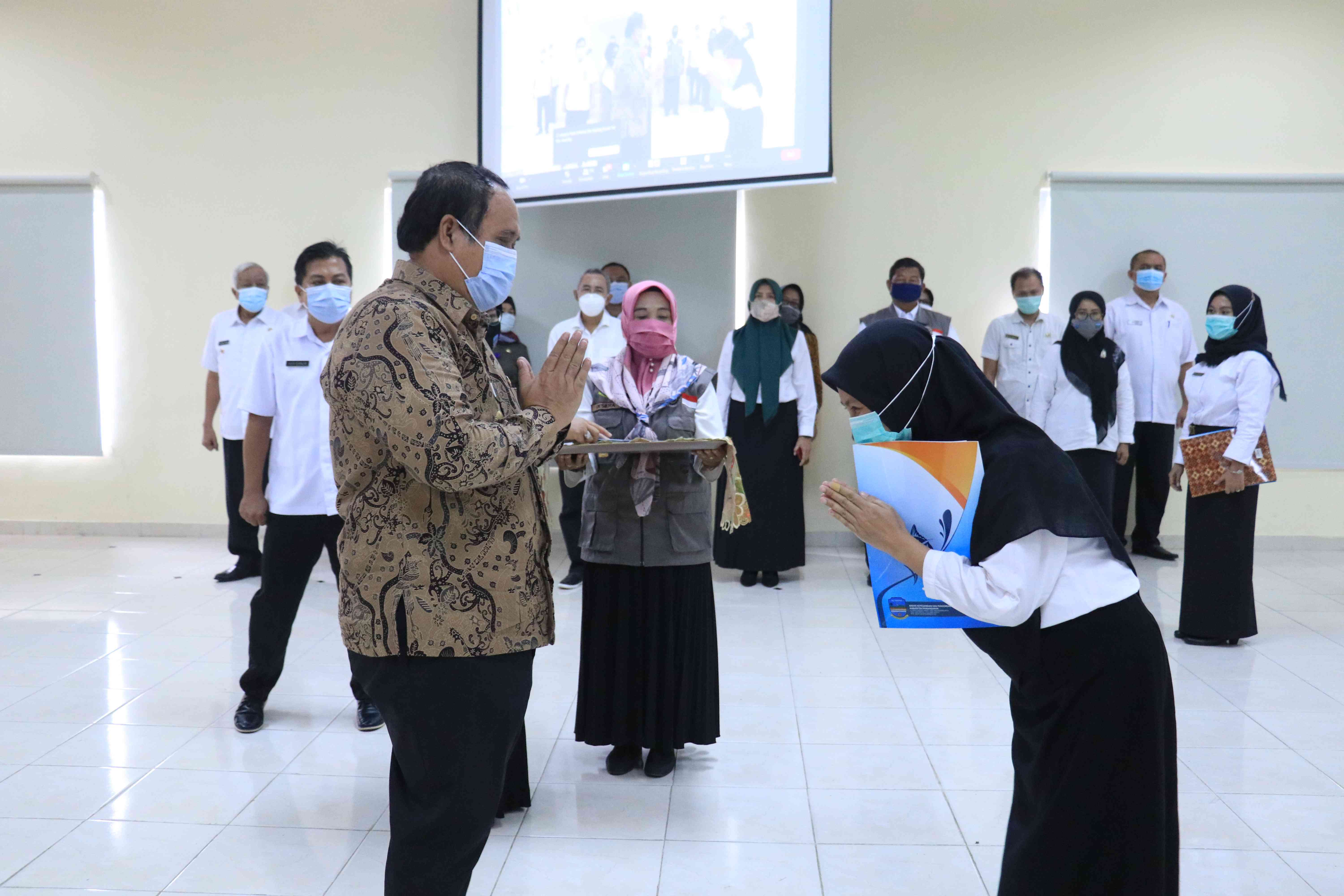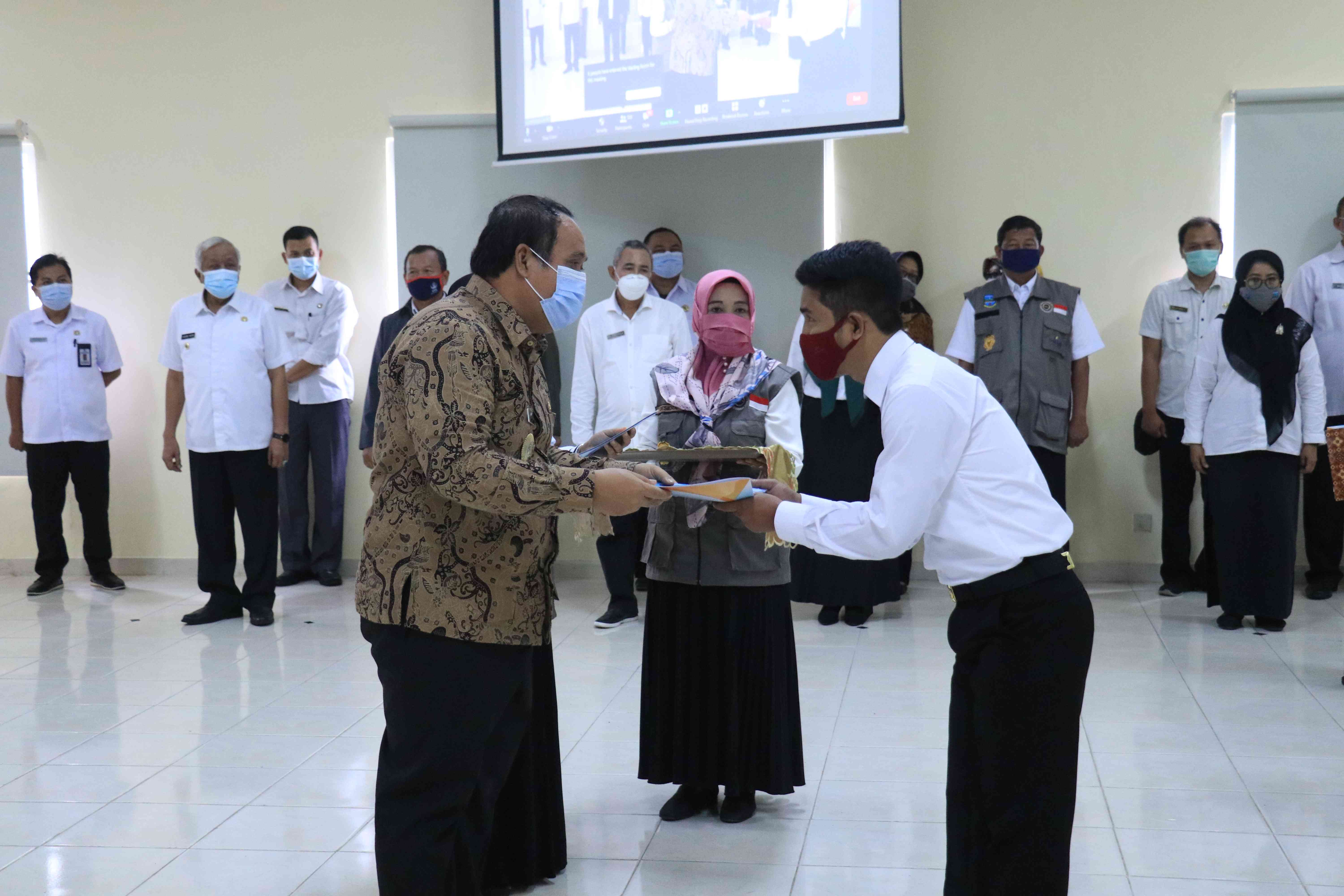 Bupati Pangandaran H. Jeje Wiradinata menyerahkan secara simbolis SK CPNS 2019, bertempat di Aula Setda Pangandaran. Rabu, 30 Desember 2020.