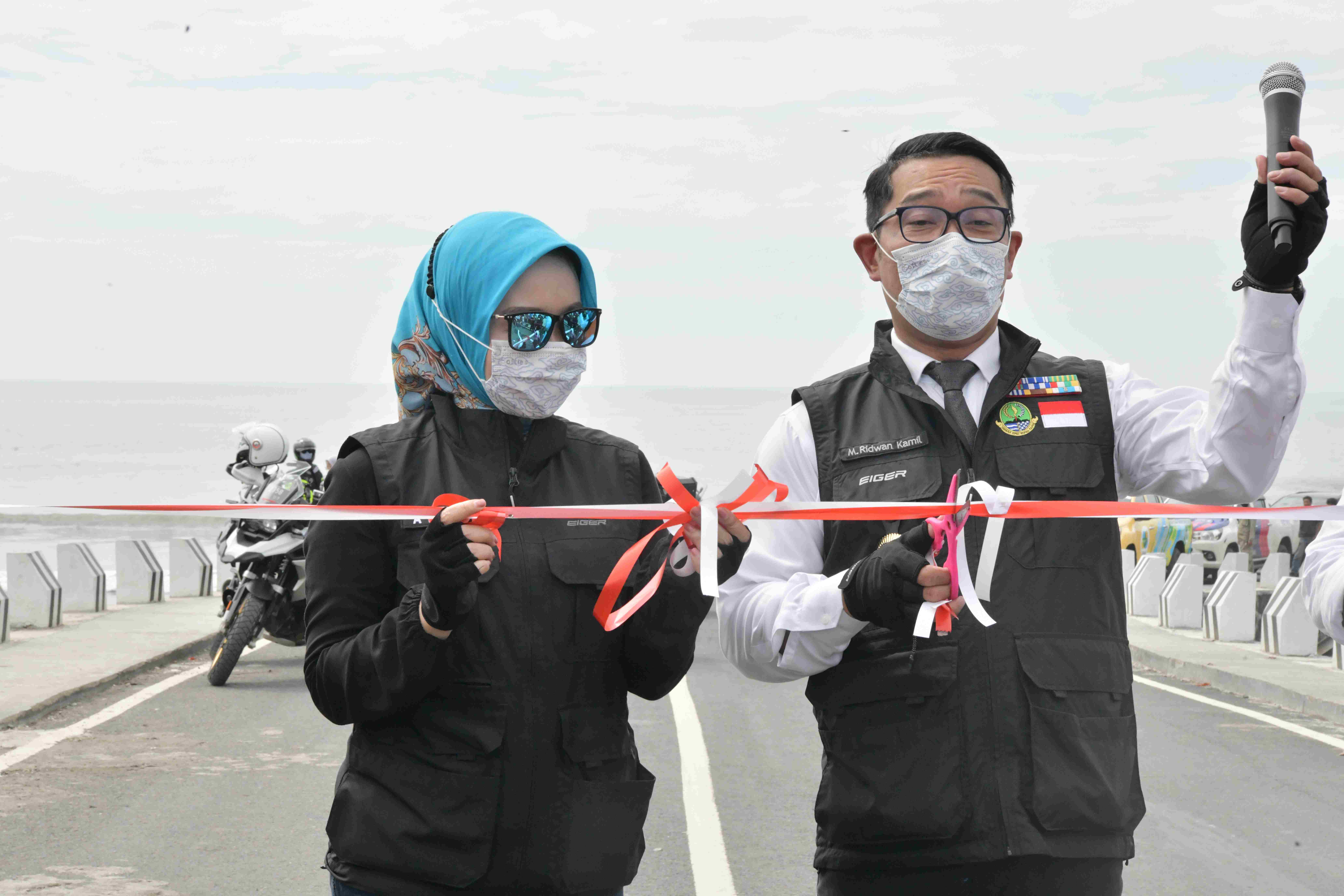 Bupati Pangandaran H. Jeje Wiradinata dampingi Gubernur Jawa Barat H. M. Ridwan Kamil meresmikan Jembatan Cikidang Pantai Timur Pangandaran. Minggu, 20 Februari 2022.