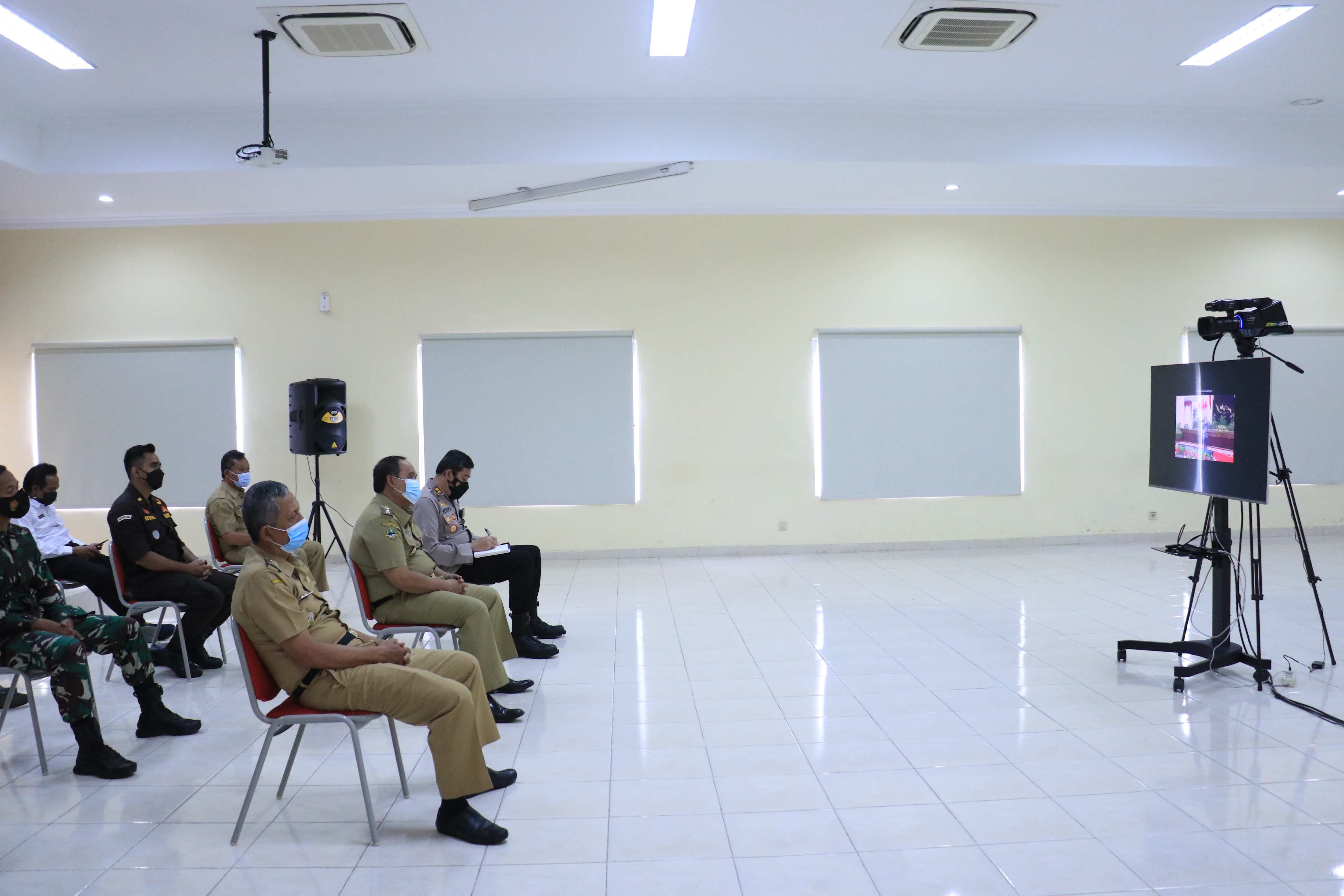 Bupati Pangandaran H. Jeje Wiradinata hadiri Rapat Koordinasi Kepala Daerah hasil Pilkada Serentak Tahun 2020 (menerima pengarahan dari Presiden RI) secara Virtual, bertempat di Aula Setda Pangandaran. Rabu, 14 April 2021.
