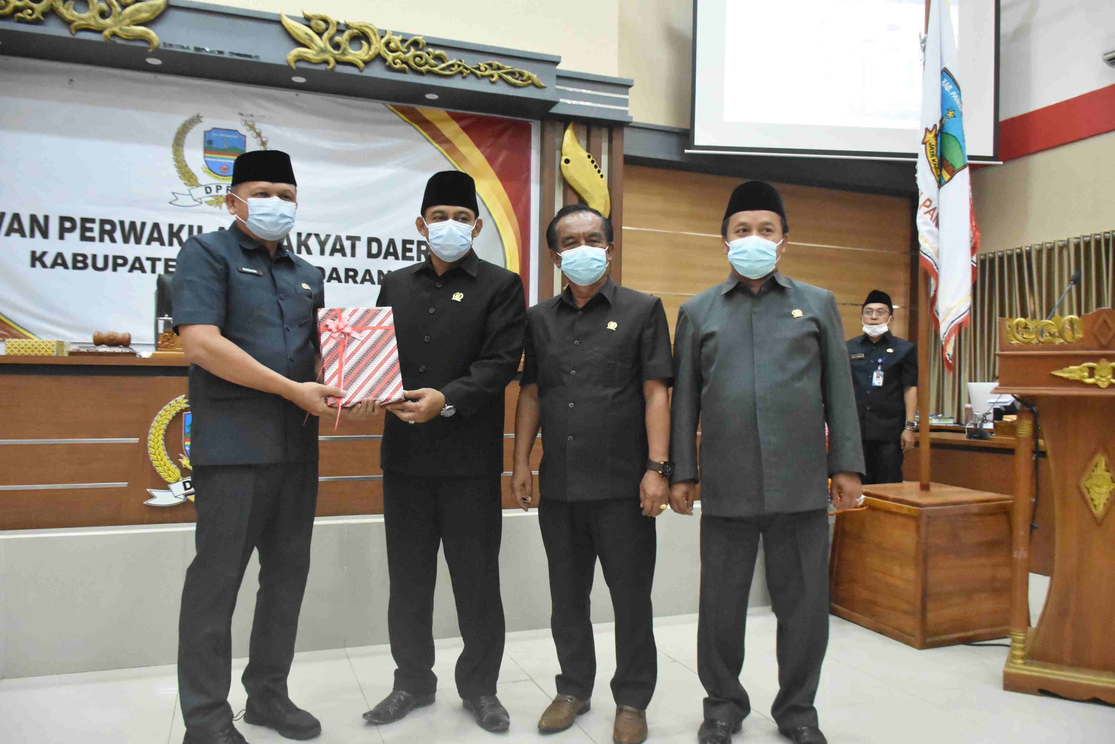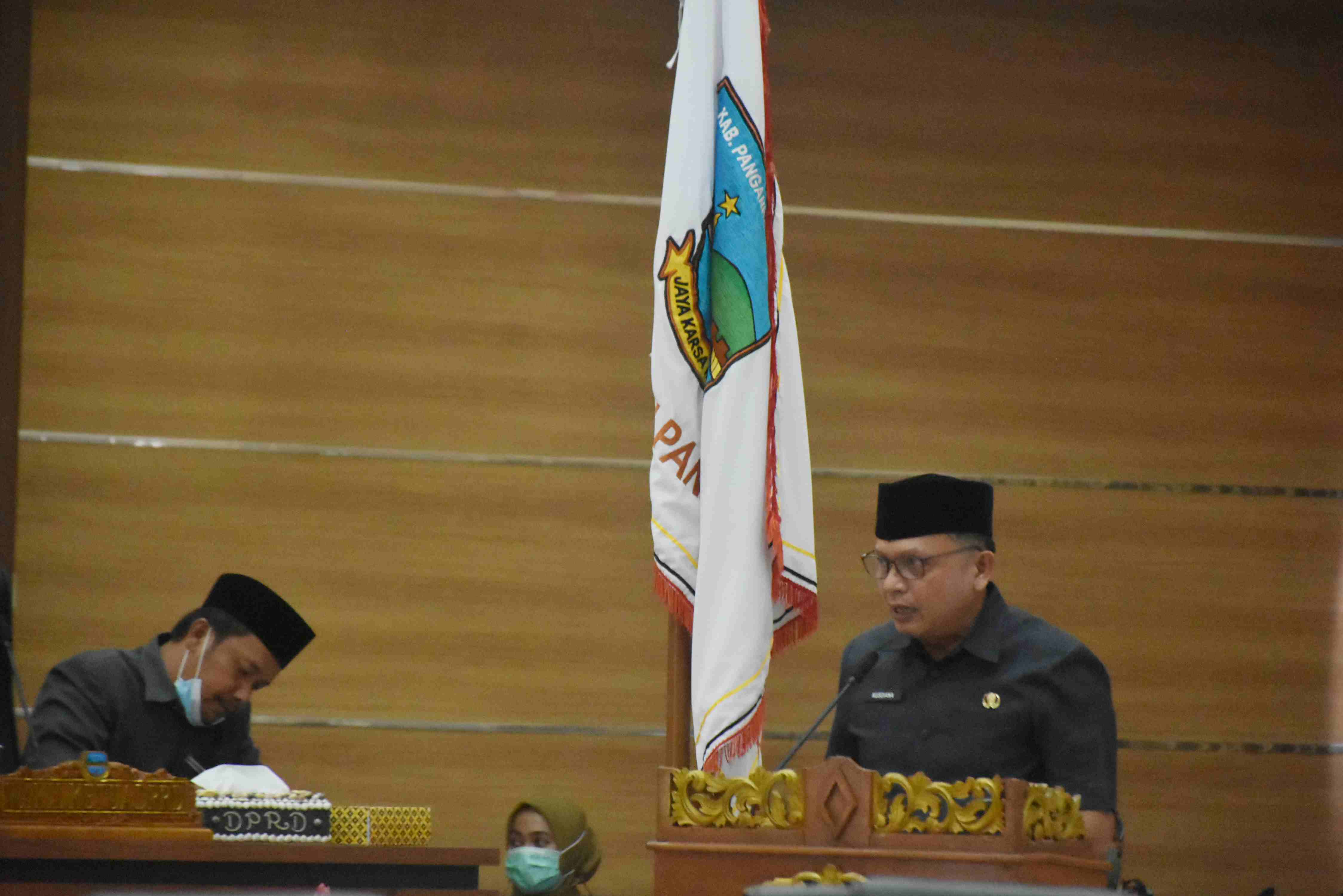 Plh Bupati Pangandaran H. Kusdiana hadiri Rapat Paripurna DPRD Kab. Pangandaran terkait Laporan Keterangan Pertanggungjawaban Bupati Pangandaran Akhir Tahun Anggaran 2020, bertempat di Gd. Rapat Paripurna DPRD Kab. Pangandaran. Senin, 8 Februari 2021.