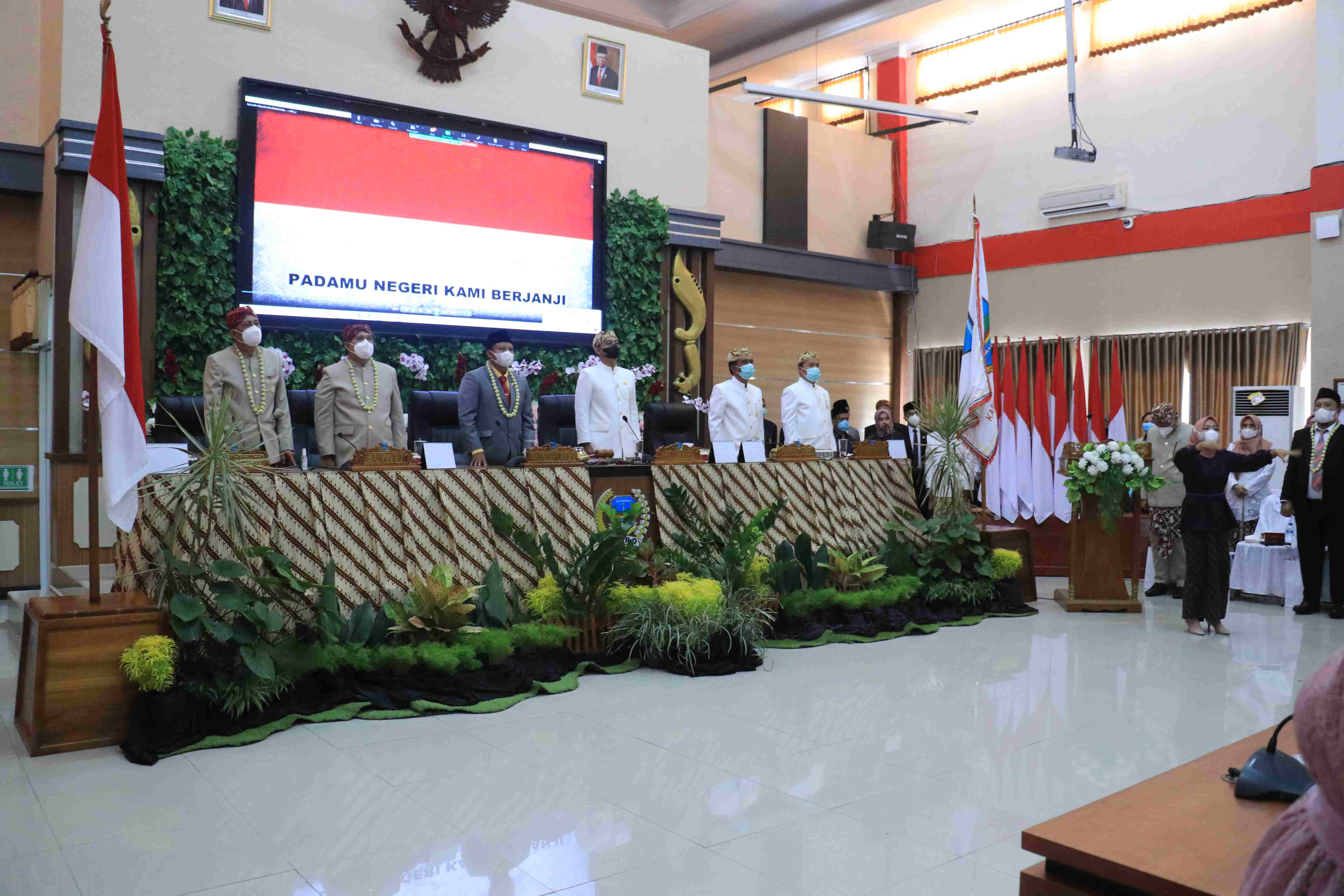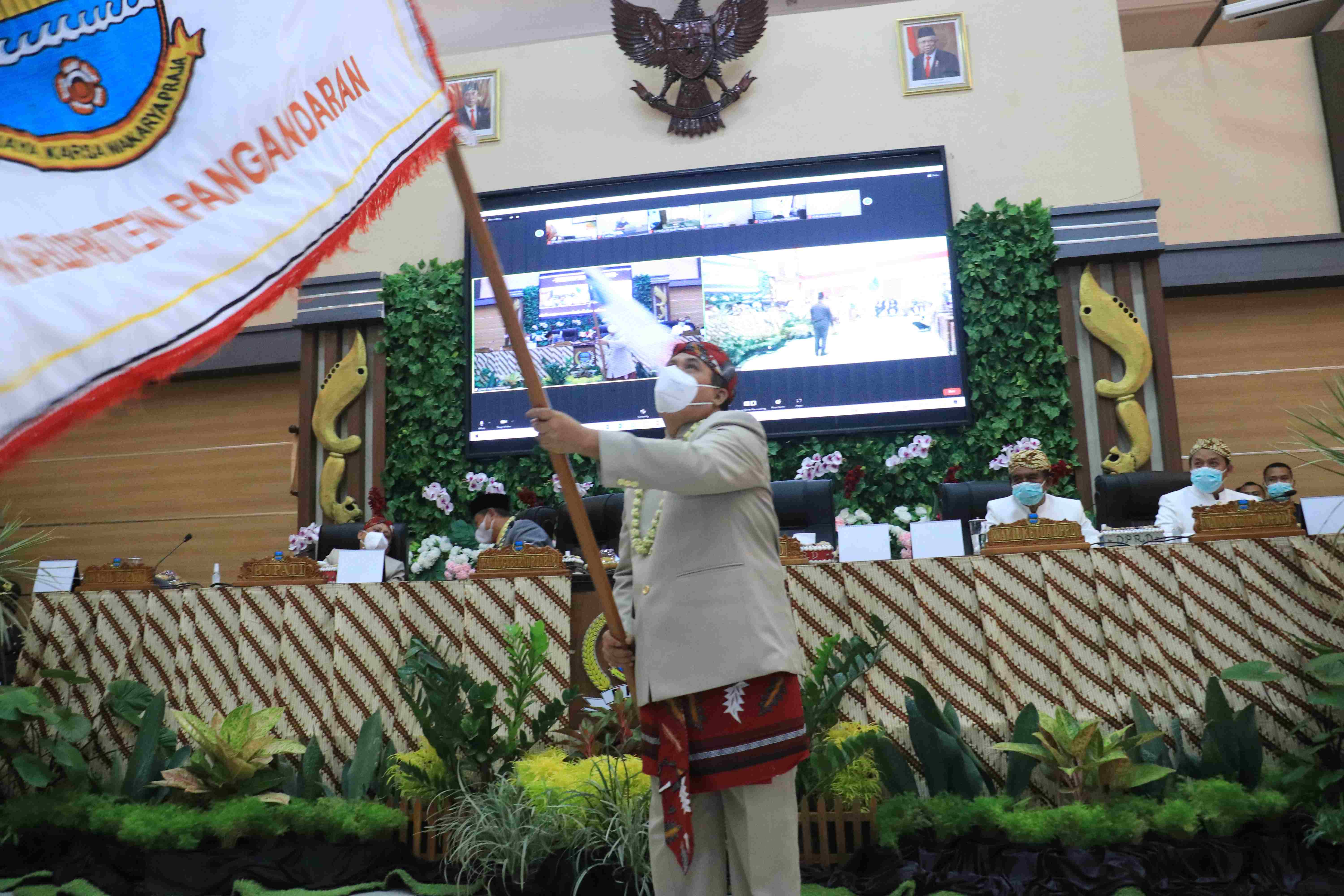 Bupati Pangandaran H. Jeje Wiradinata dan Wakil Bupati Pangandaran H. Ujang Endin Indrawan hadiri Rapat Paripurna DPRD Kabupaten Pangandaran dalam rangka Memperingati Hari Jadi ke-9 Kabupaten Pangandaran, bertempat di Ruang Rapat DPRD Kabupaten Pangandaran. Senin, 25 Oktober 2021.
