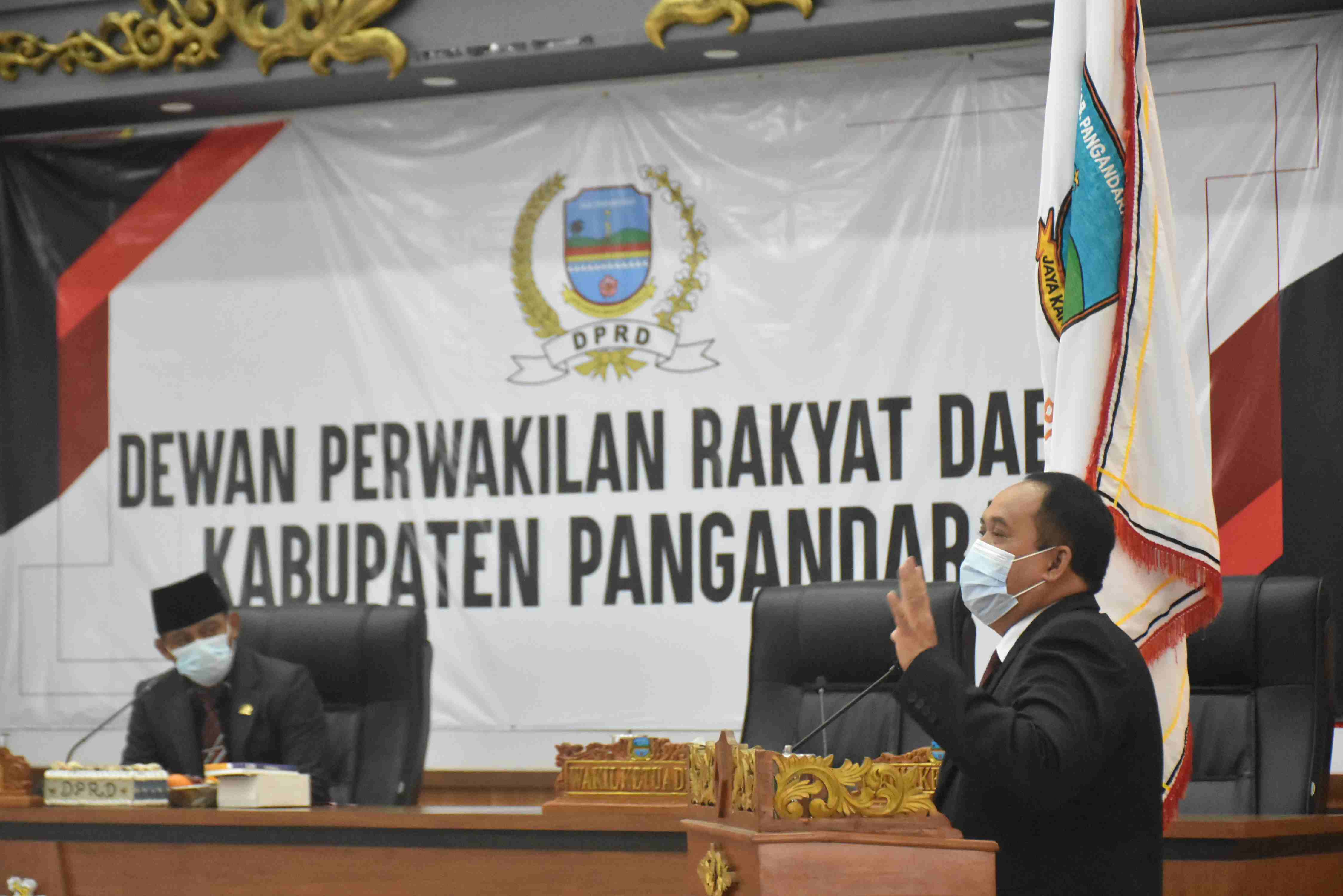 Bupati Pangandaran H. Jeje Wiradinata hadiri Rapat Paripurna Penyampaian Rekomendasi LKPJ Bupati Pangandaran, bertempat di Gd. Rapat Paripurna DPRD Kab. Pangandaran. Selasa, 16 Februari 2021.