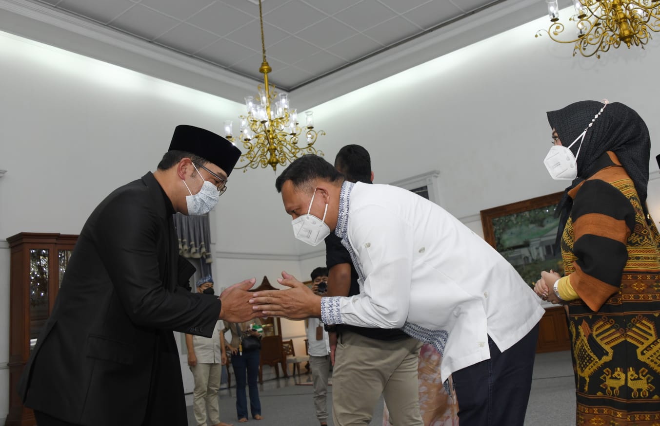 Bupati Pangandaran H. Jeje Wirardinata bersama Ibu Hj. Ida Nurlaela Wiradinata didampingi Sekda Kab. Pangandaran Dr. Drs. H. Kusdiana, M.M dan Istri melakukan Takziah kepada keluarga Gubernur Jawa Barat Bapak H. M. Ridwan Kamil dan Ibu Atalia Praratya atas berpulangnya ke rahmatullah ananda Emmeril Kahn Mumtadz, bertempat di Gedung Pakuan Kota Bandung. Minggu, 5 Juni 2022.