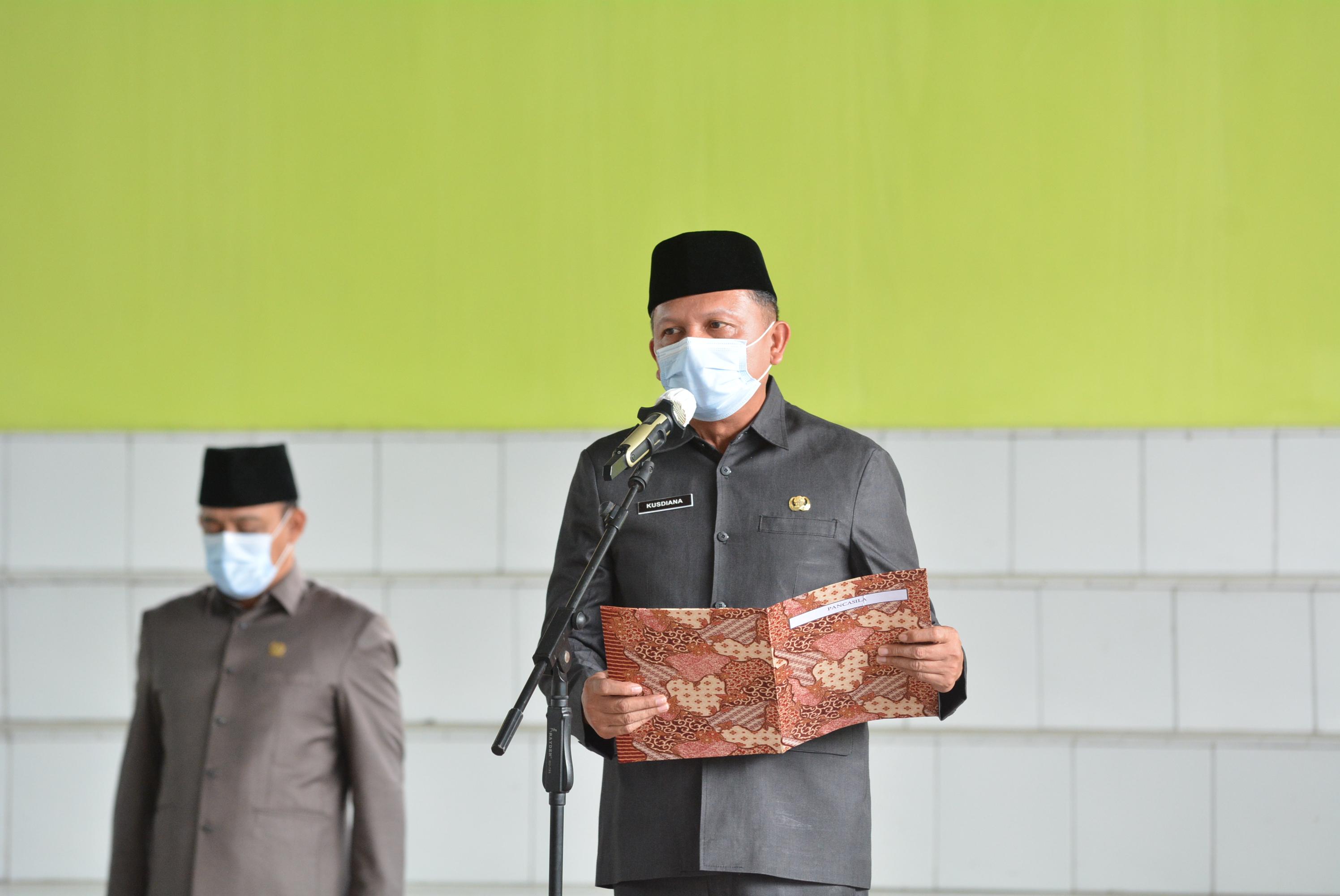 Sekda Kab. Pangandaran Drs. H. Kusdiana, M.M pimpin Upacara Hari Pahlawan Tingkat Kabupaten Pangandaran Tahun 2020, bertempat di GOR SMAN 1 Parigi. Selasa, 10 November 2020.