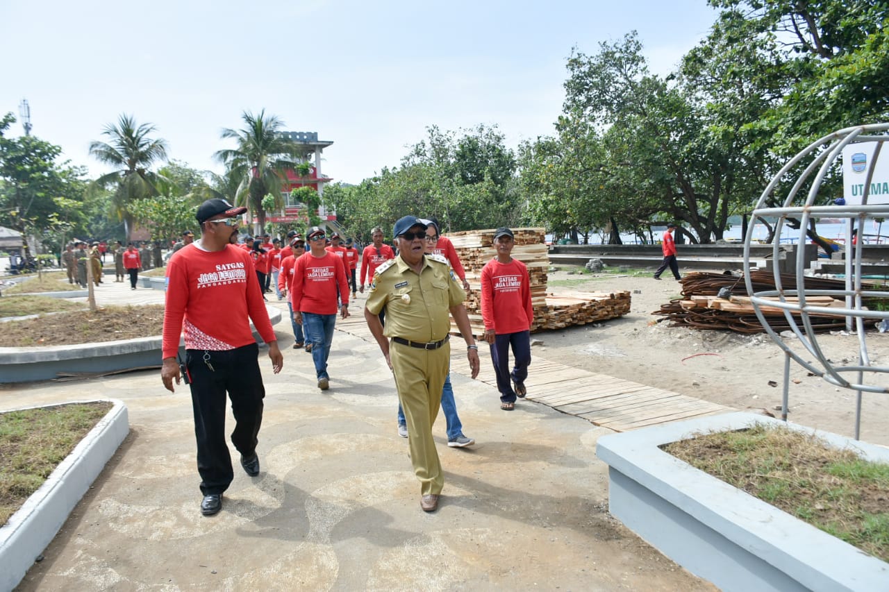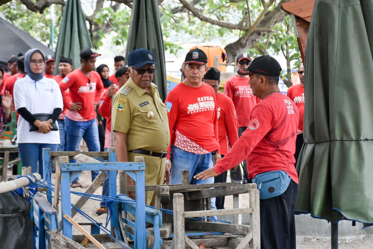 Wakil Bupati Pangandaran H. Adang Hadari pimpin relokasi pelaku usaha di Pantai Barat Pangandaran. Selasa, 10 Desember 2019.